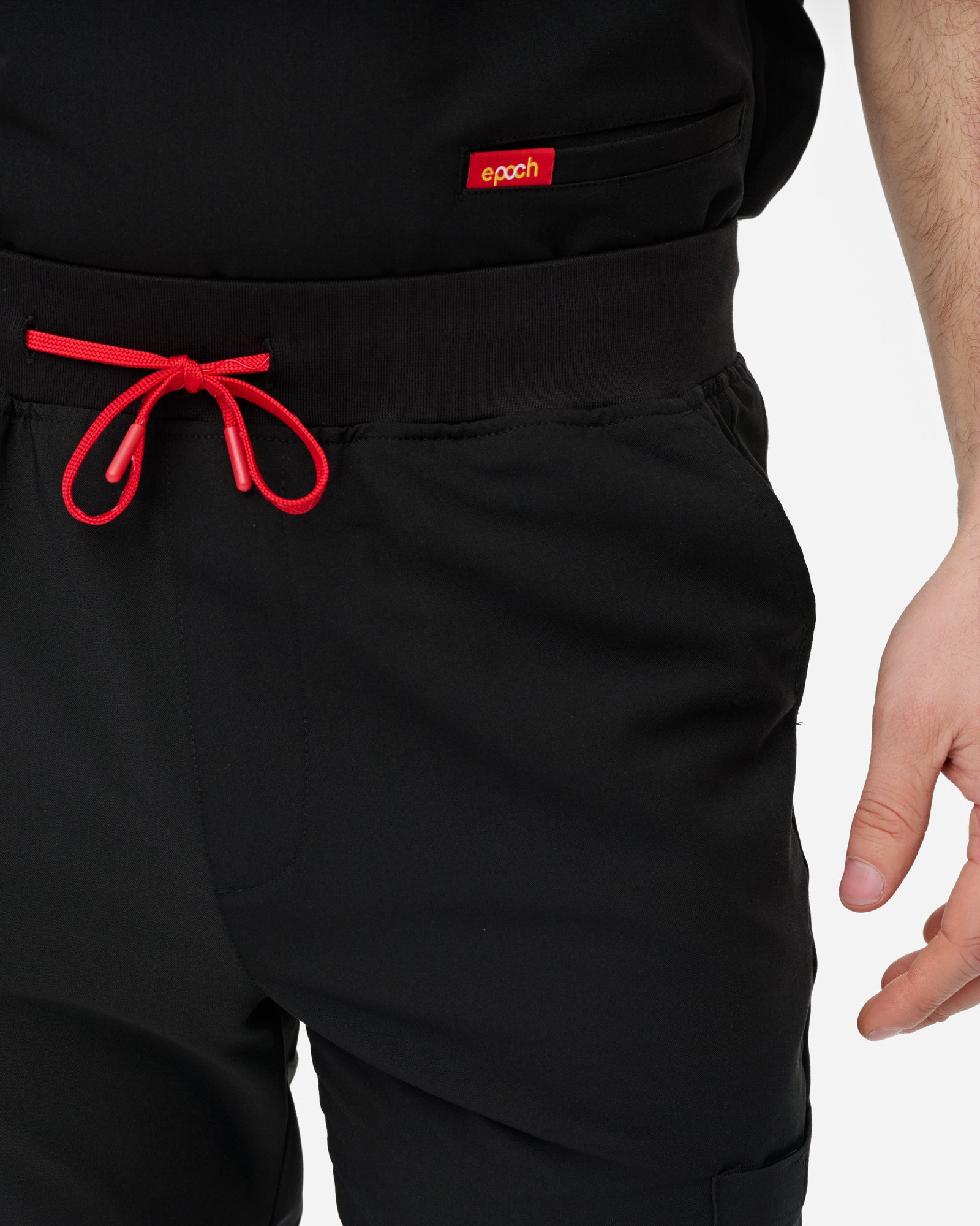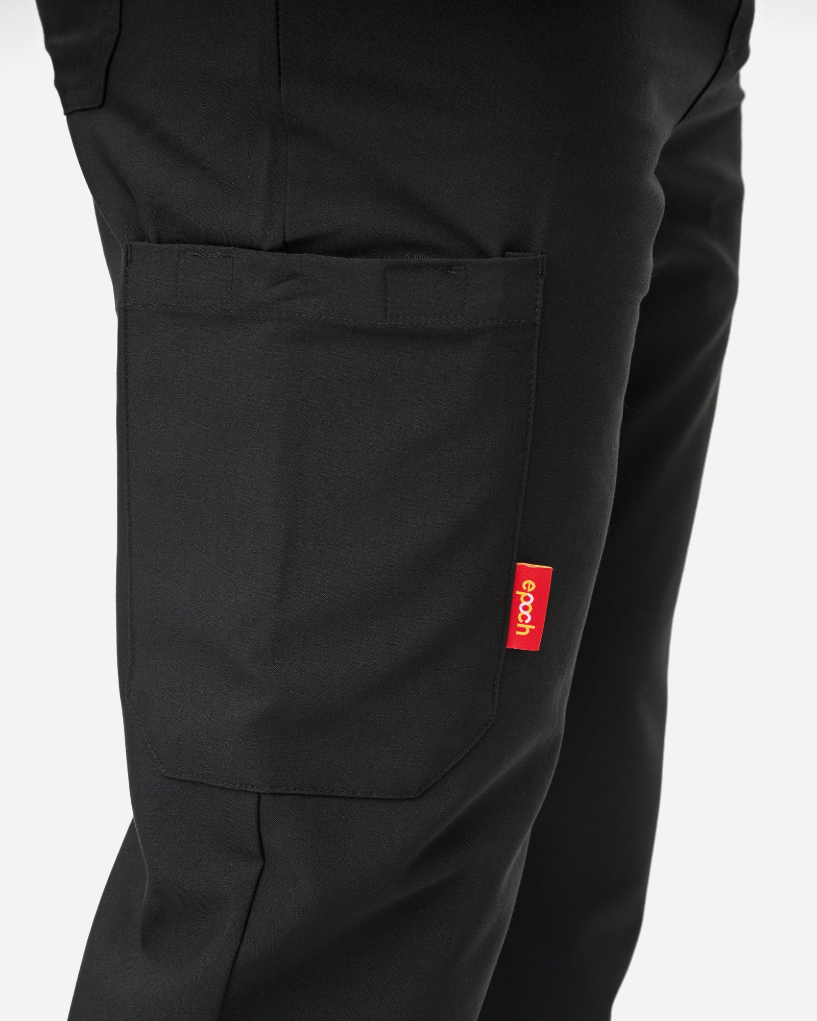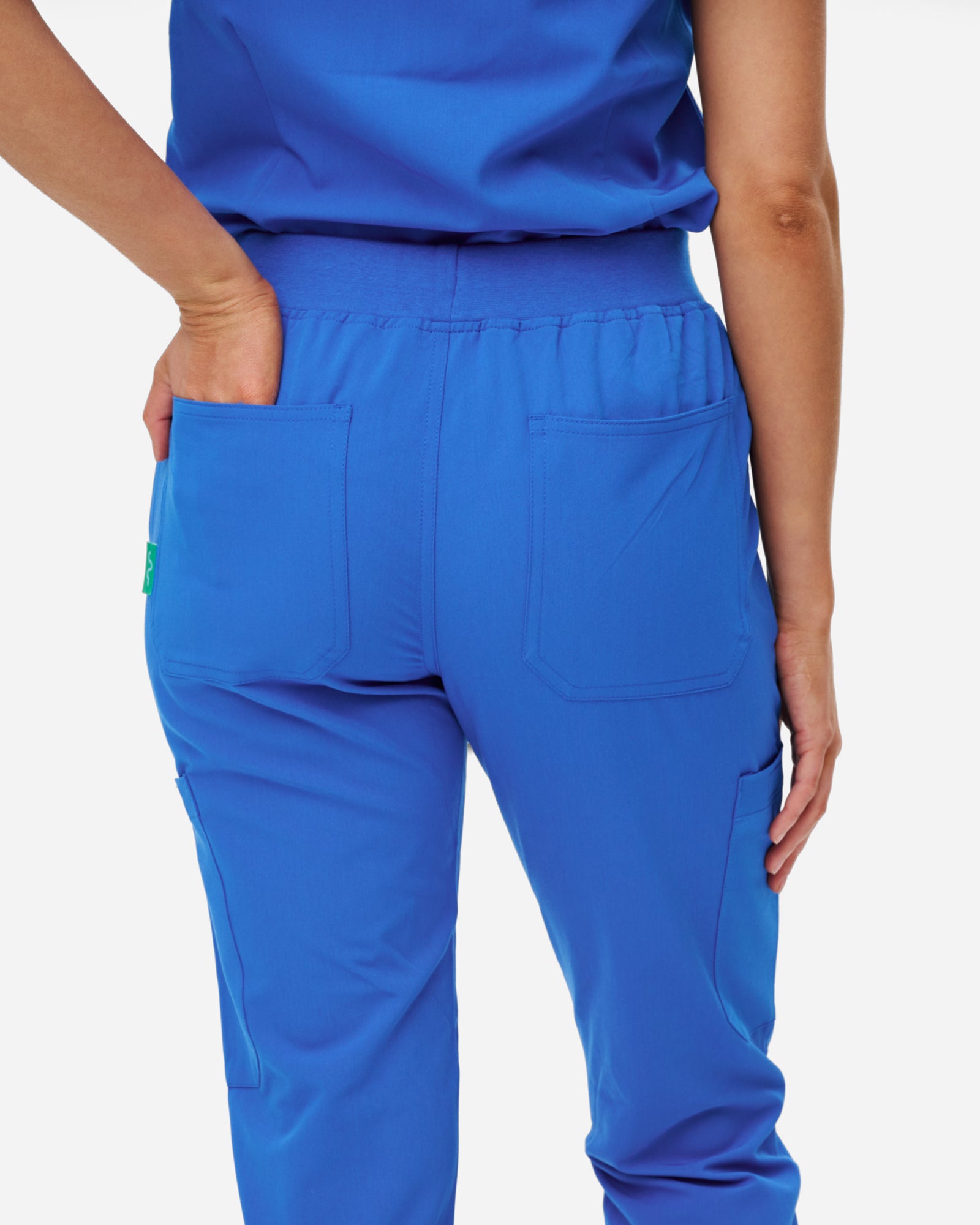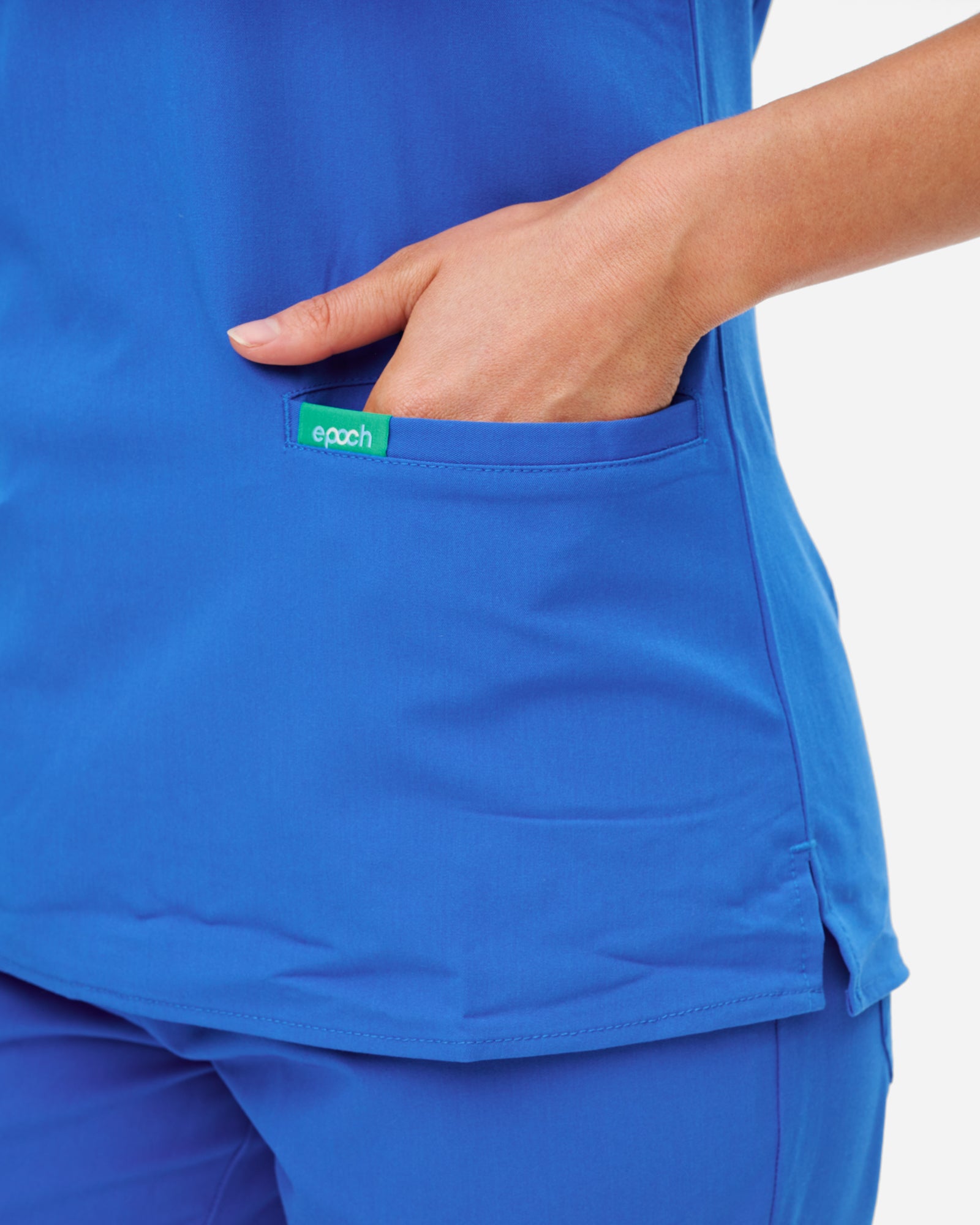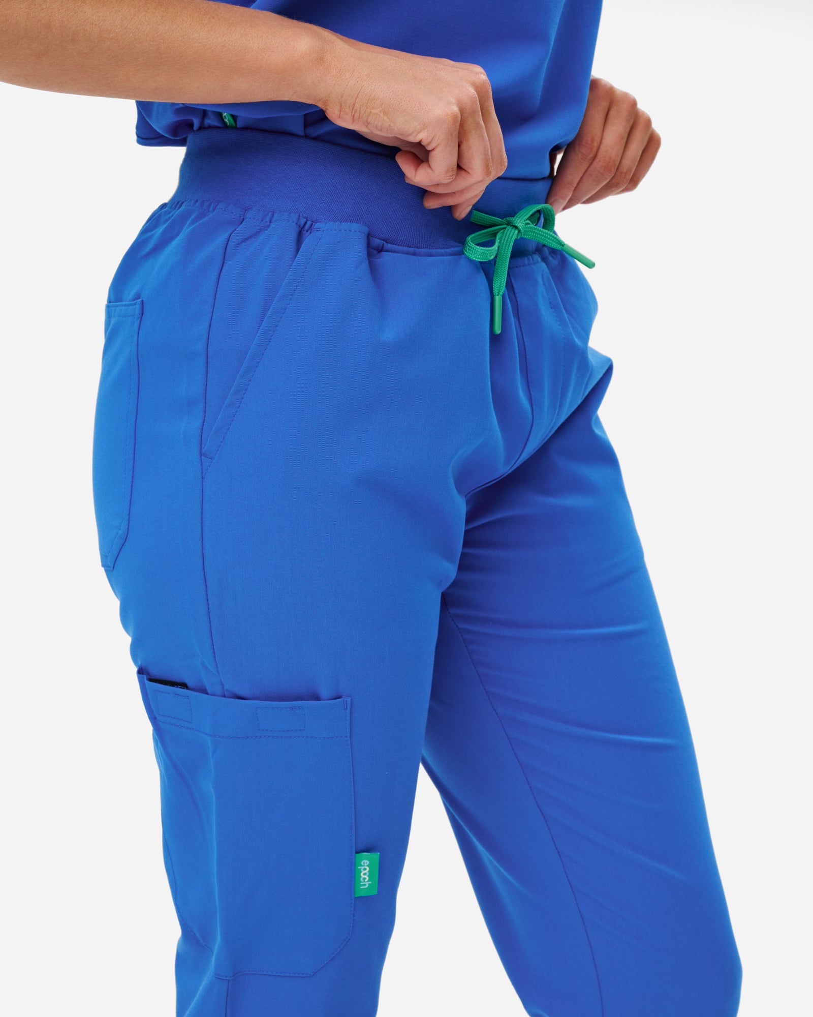 Experience unmatched comfort and durability with our Womens Scrub Jogger Pant from Epoch. Made with soft, stretchy fabric and featuring a convenient ring pocket inside the waistband and side pockets with velcro, these pants are designed for all-day wear. With a pop of color on the drawcord and cuffed legs, they are both stylish and long lasting. Upgrade your scrub game now.