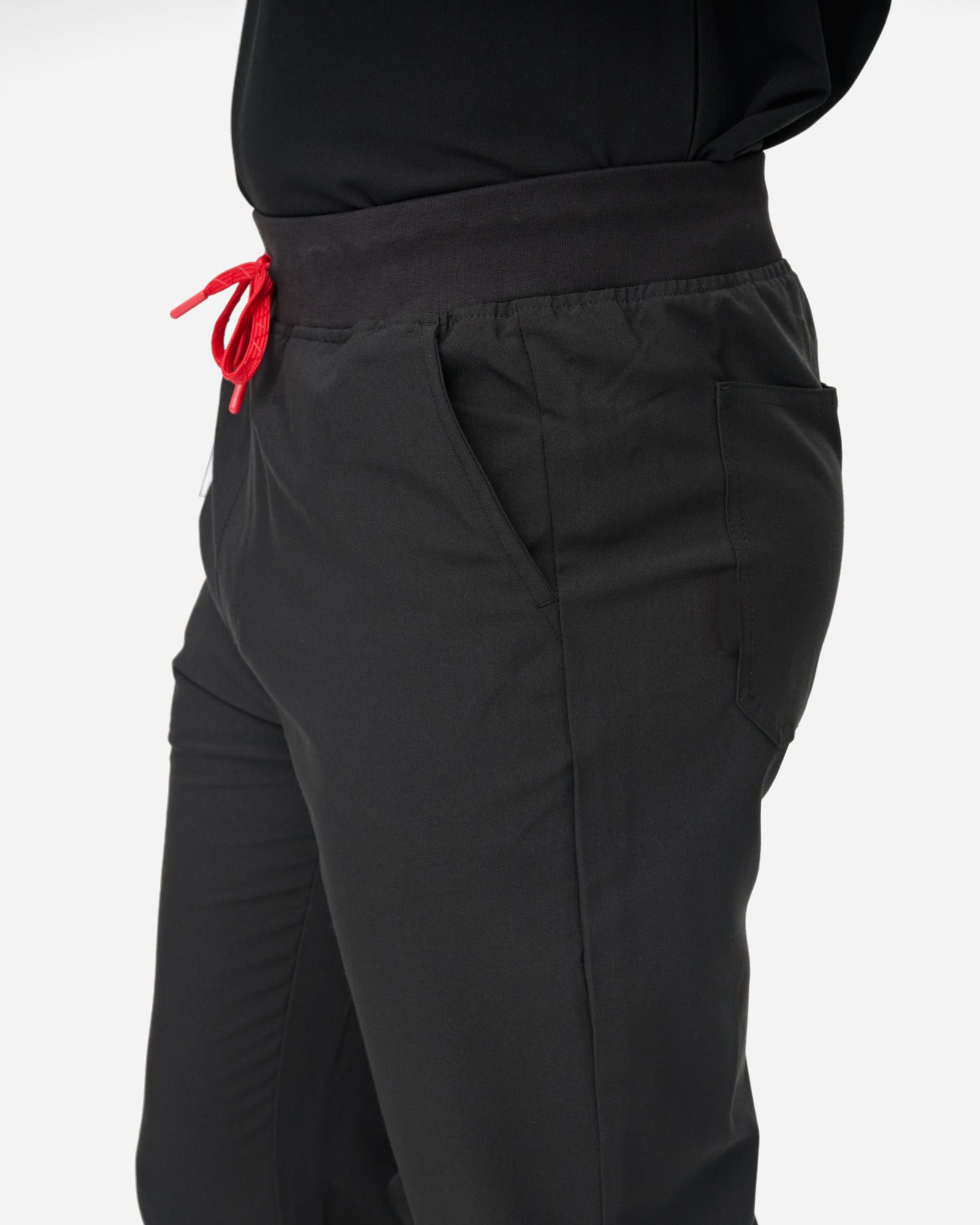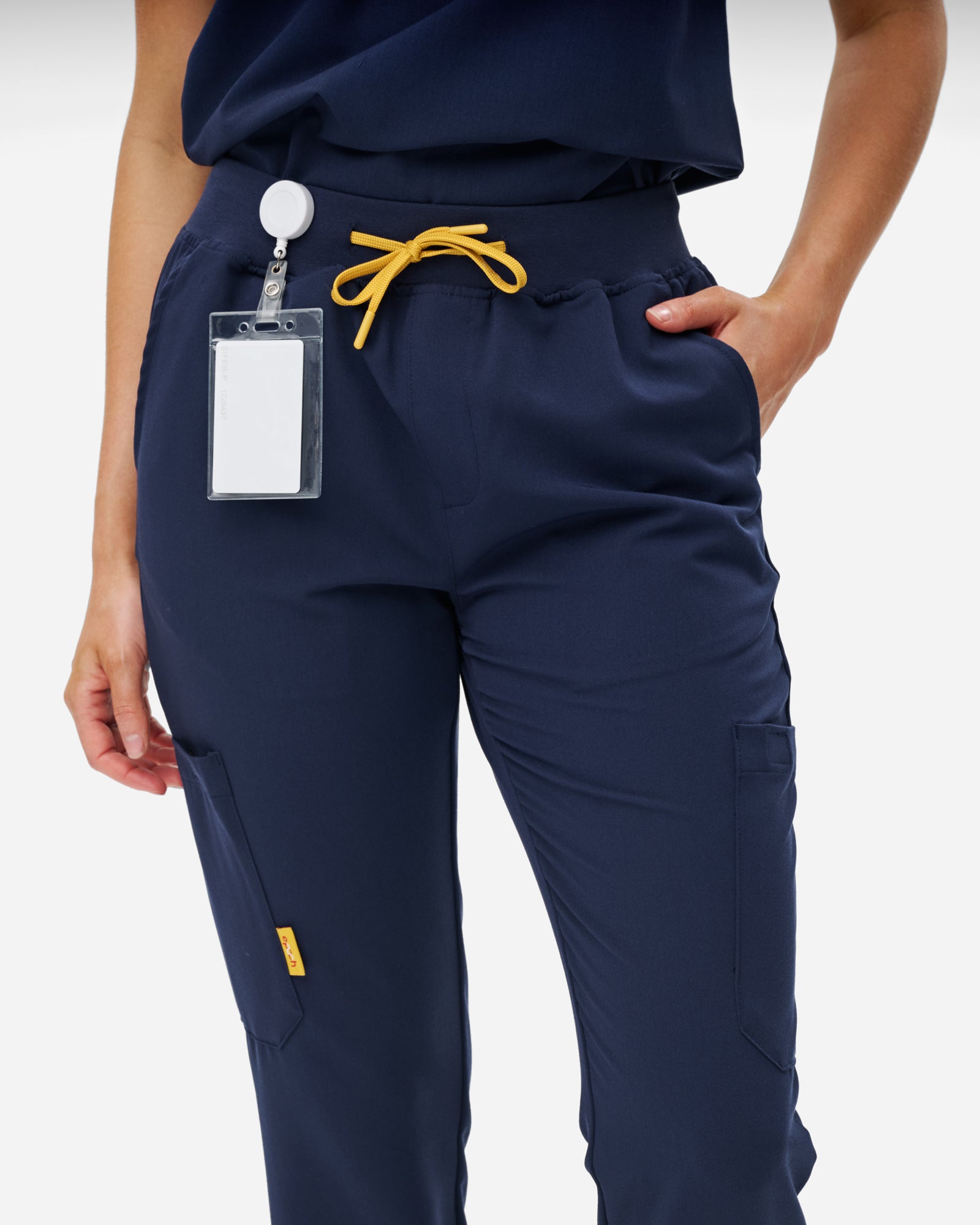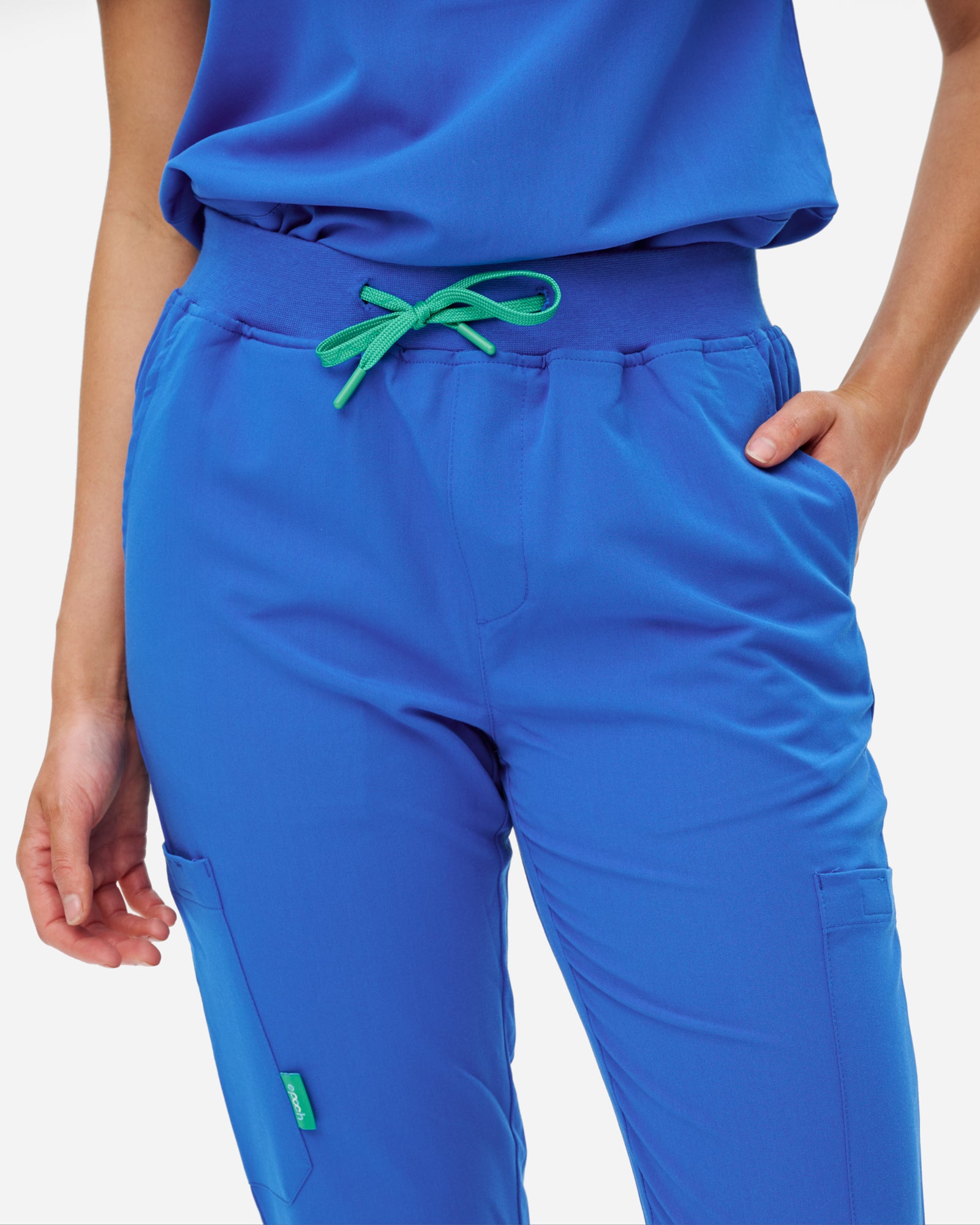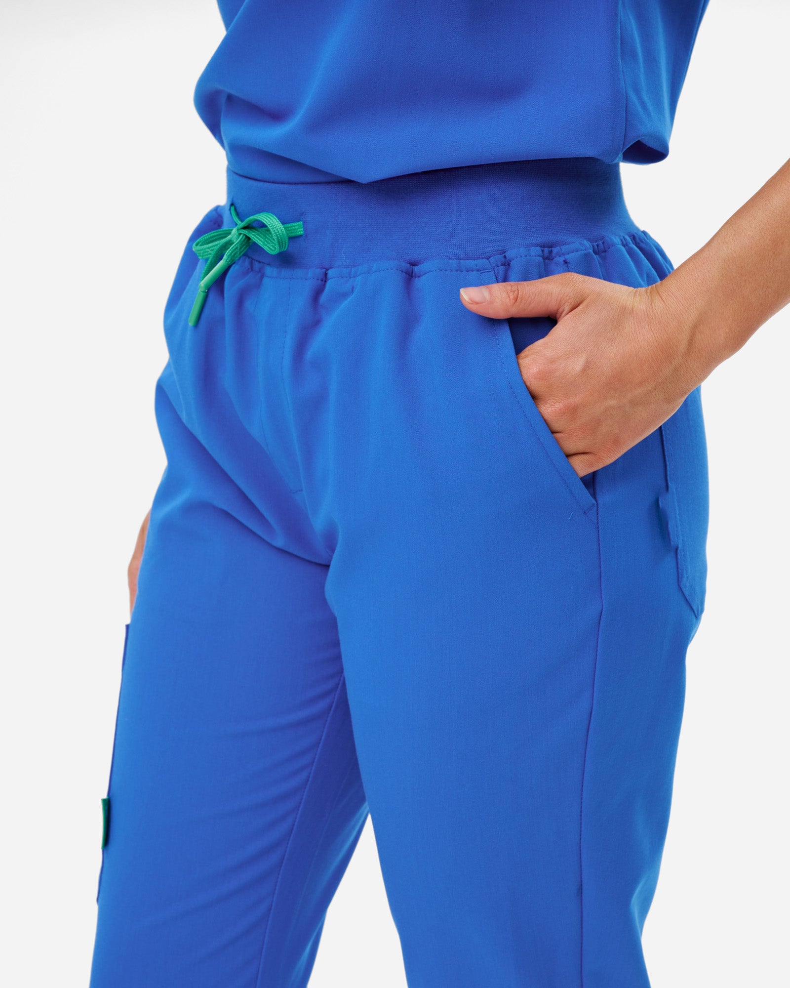 Experience unmatched comfort and durability with our Womens Scrub Jogger Pant from Epoch. Made with soft, stretchy fabric and featuring a convenient ring pocket inside the waistband and side pockets with velcro, these pants are designed for all-day wear. With a pop of color on the drawcord and cuffed legs, they are both stylish and long lasting. Upgrade your scrub game now.