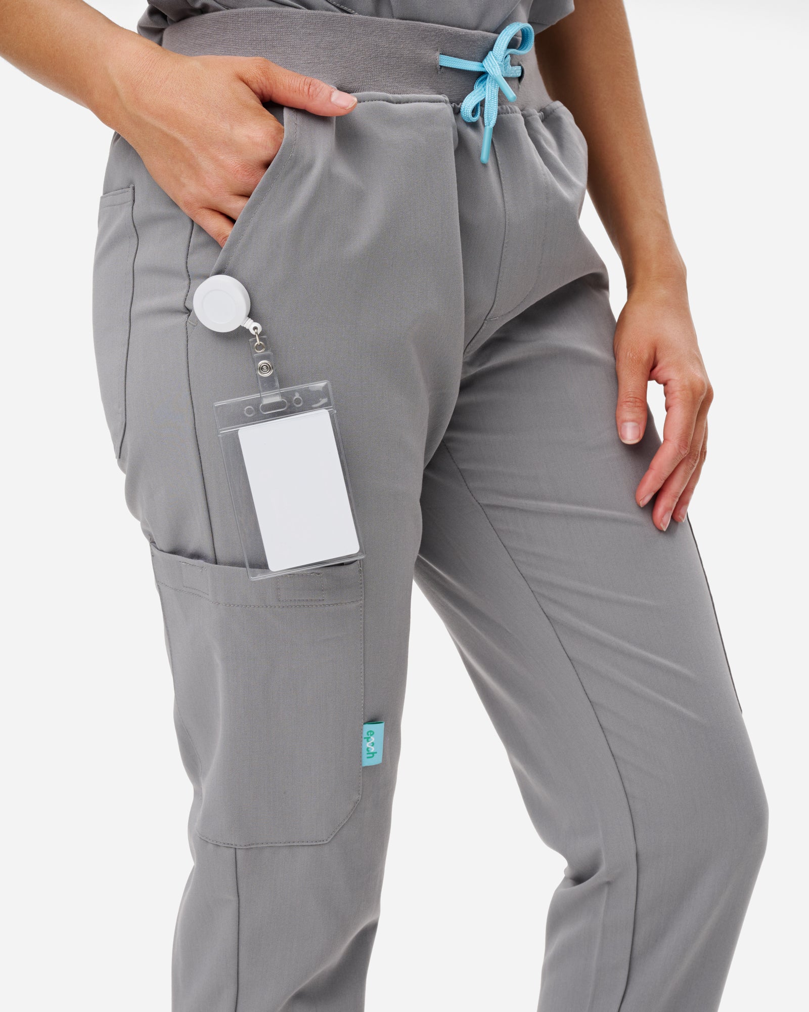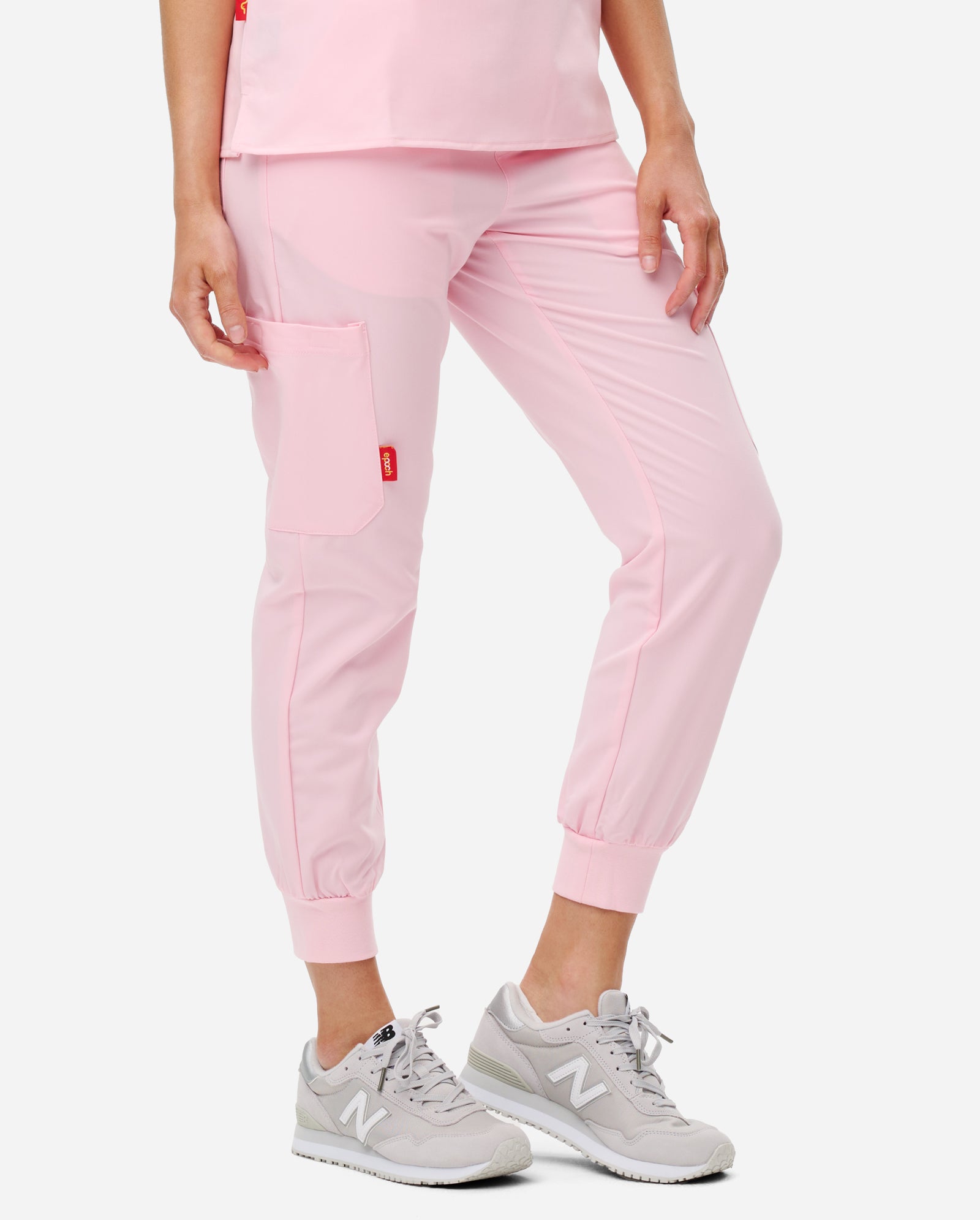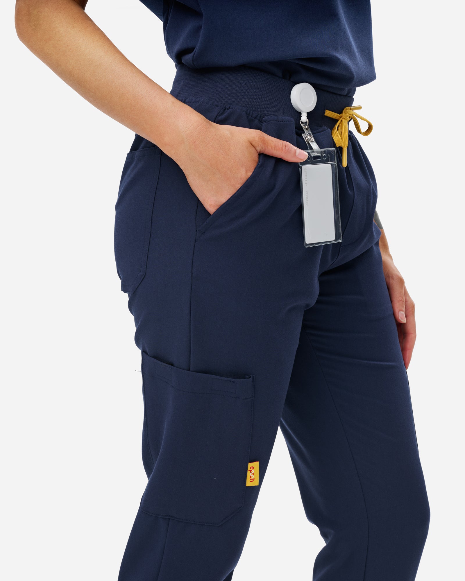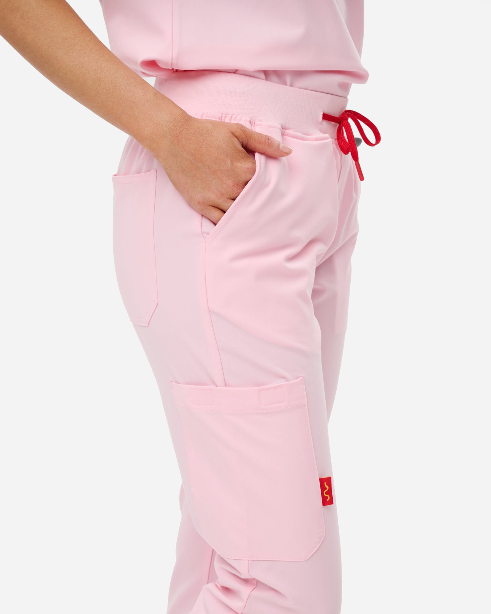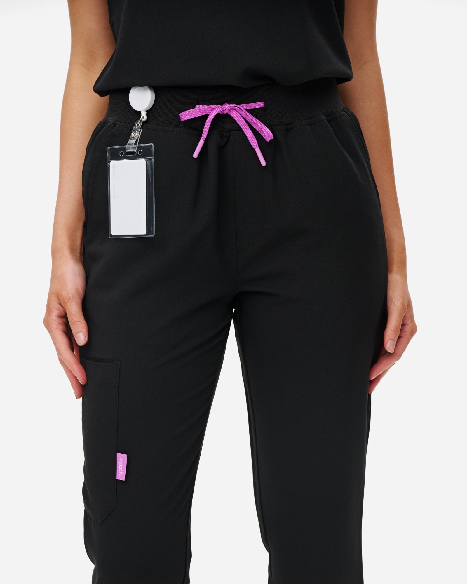 Experience unmatched comfort and durability with our Womens Scrub Jogger Pant from Epoch. Made with soft, stretchy fabric and featuring a convenient ring pocket inside the waistband and side pockets with velcro, these pants are designed for all-day wear. With a pop of color on the drawcord and cuffed legs, they are both stylish and long lasting. Upgrade your scrub game now.