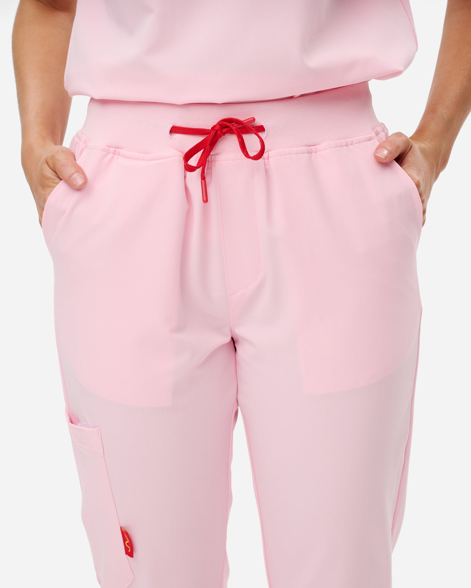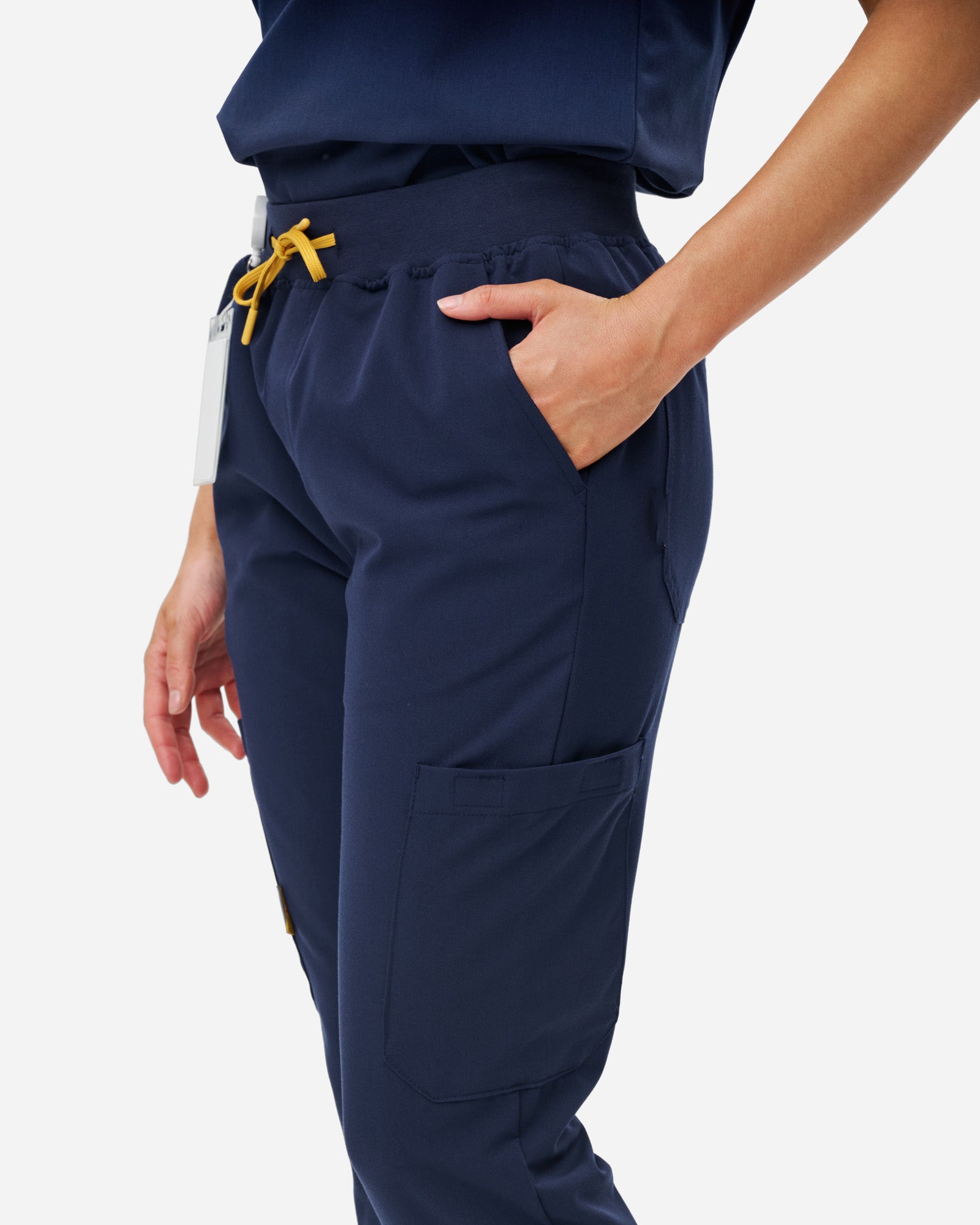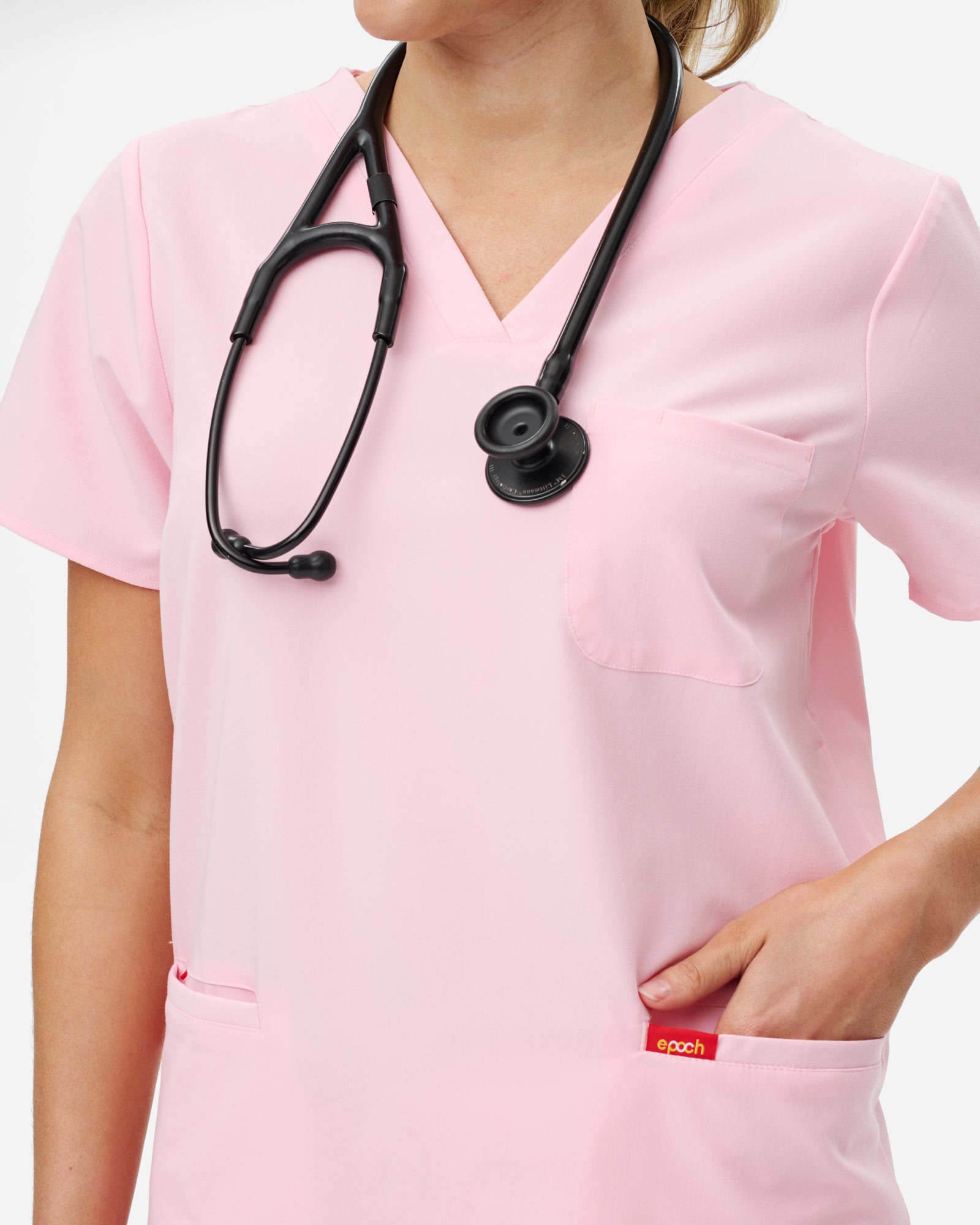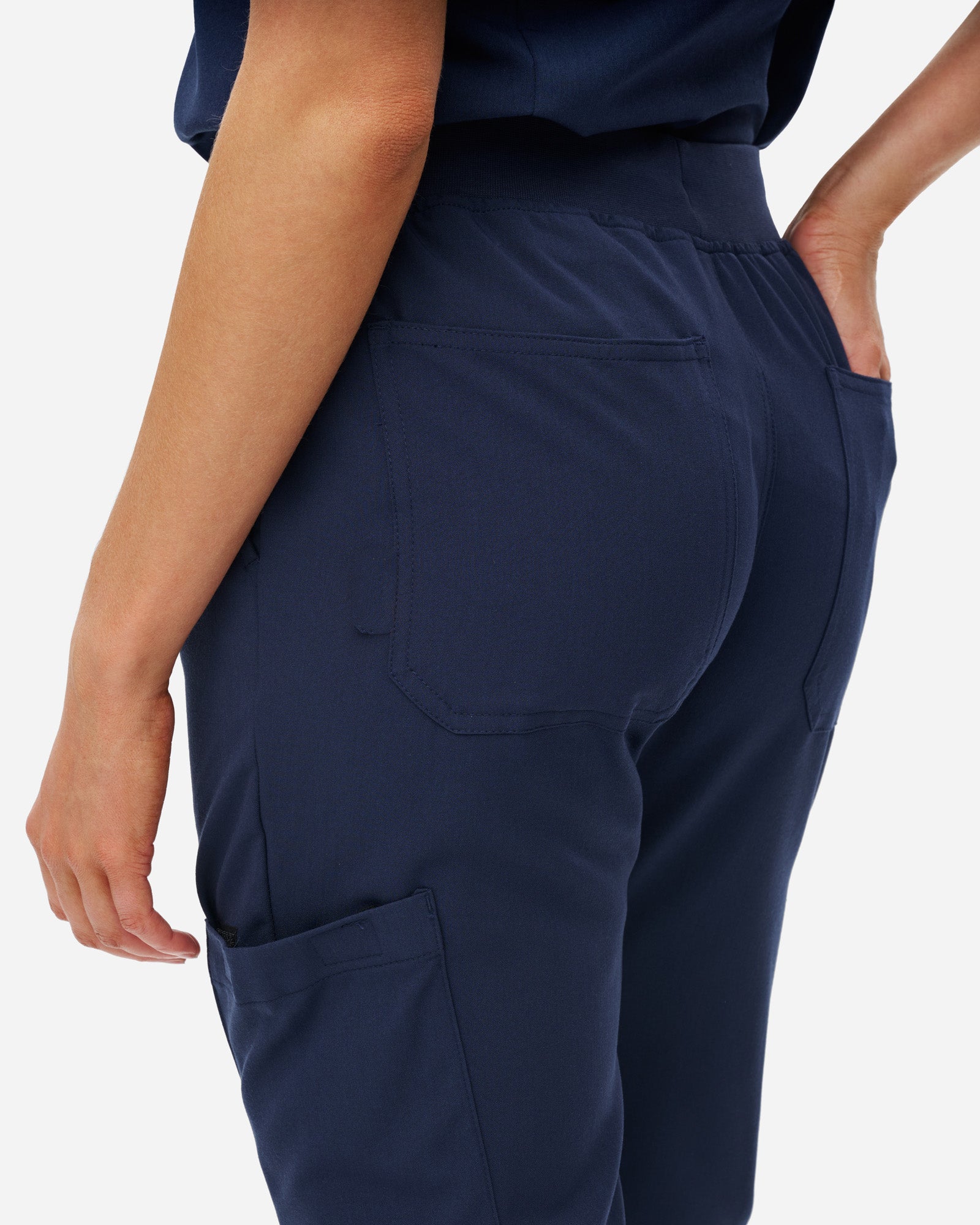 Experience unmatched comfort and durability with our Womens Scrub Jogger Pant from Epoch. Made with soft, stretchy fabric and featuring a convenient ring pocket inside the waistband and side pockets with velcro, these pants are designed for all-day wear. With a pop of color on the drawcord and cuffed legs, they are both stylish and long lasting. Upgrade your scrub game now.