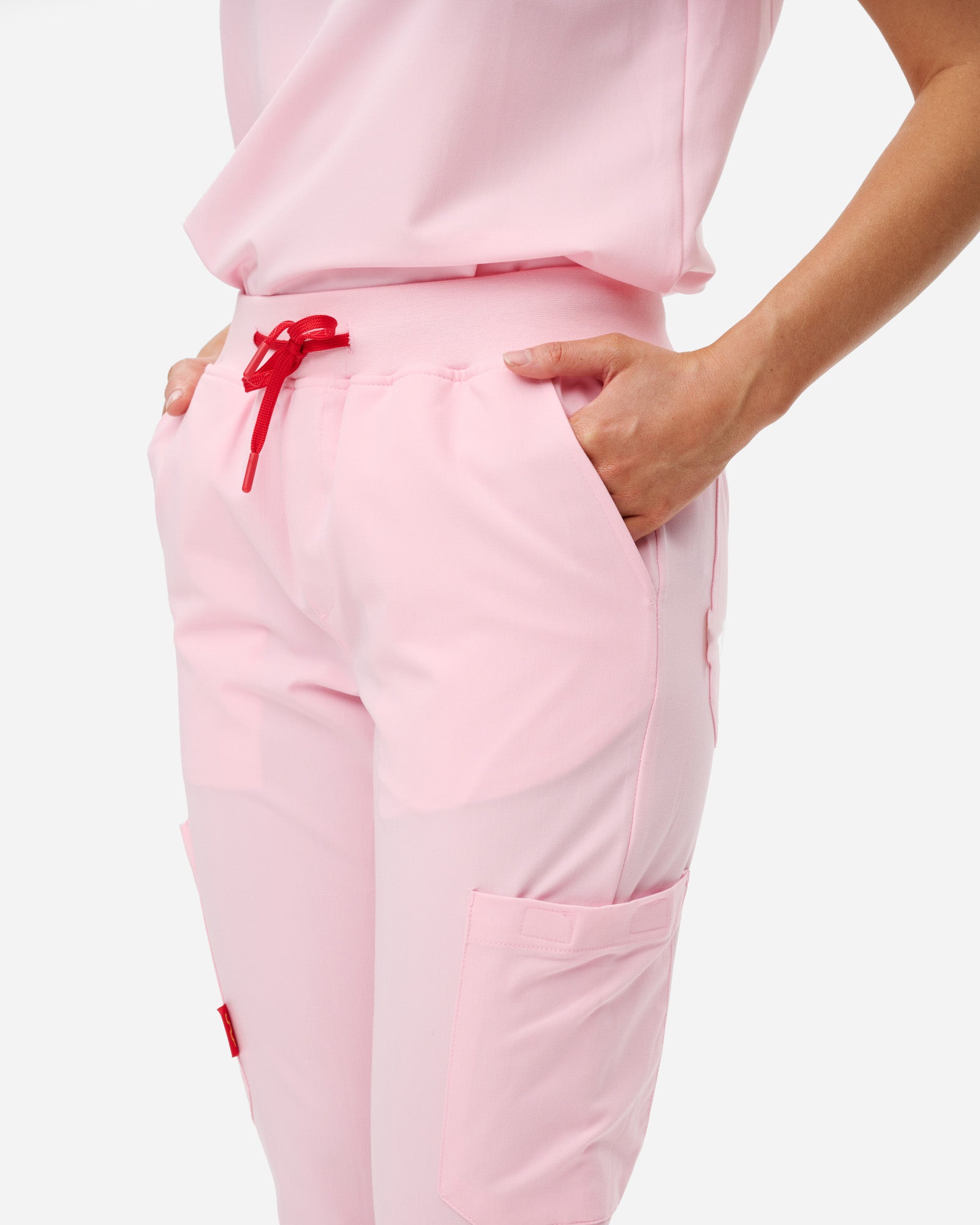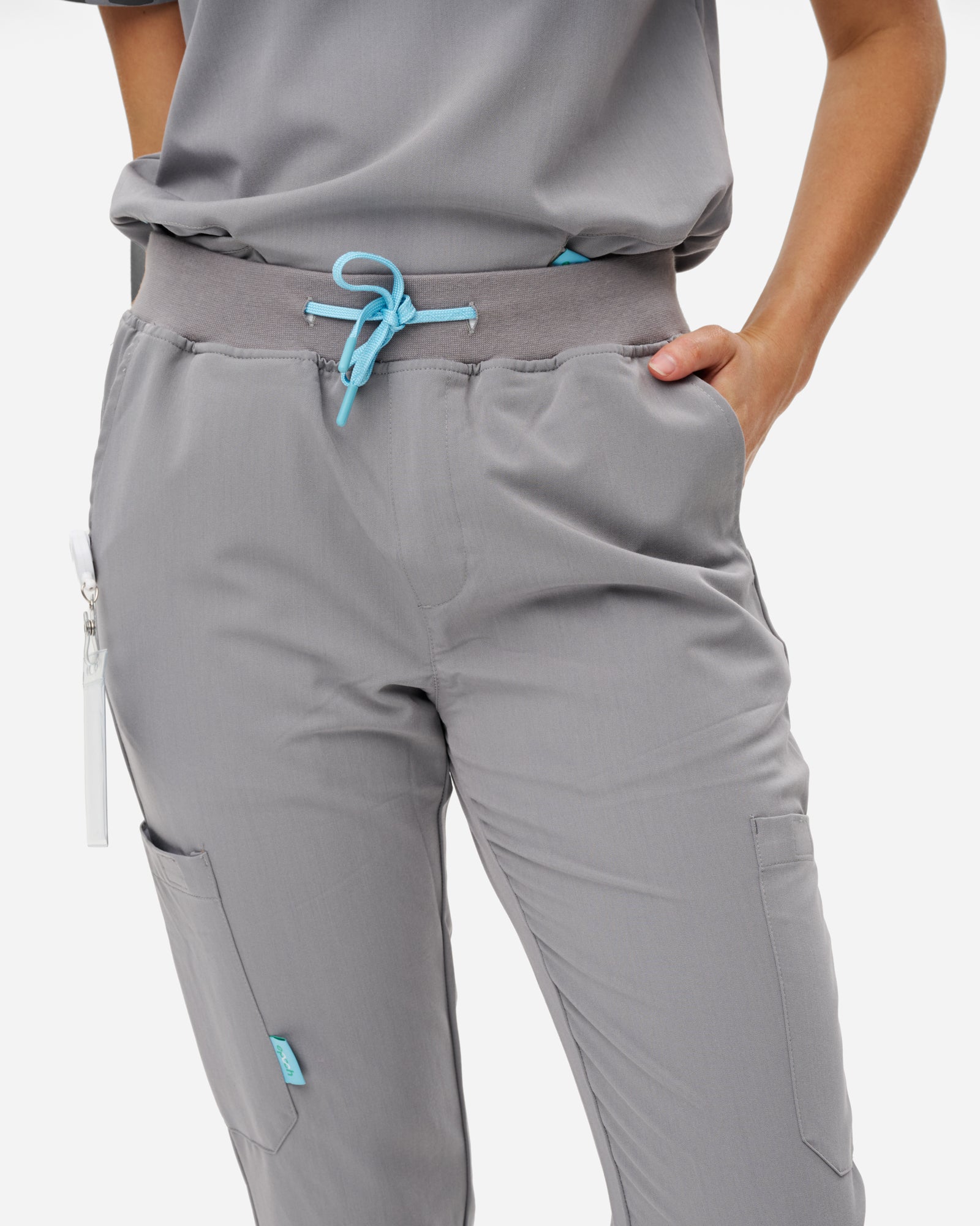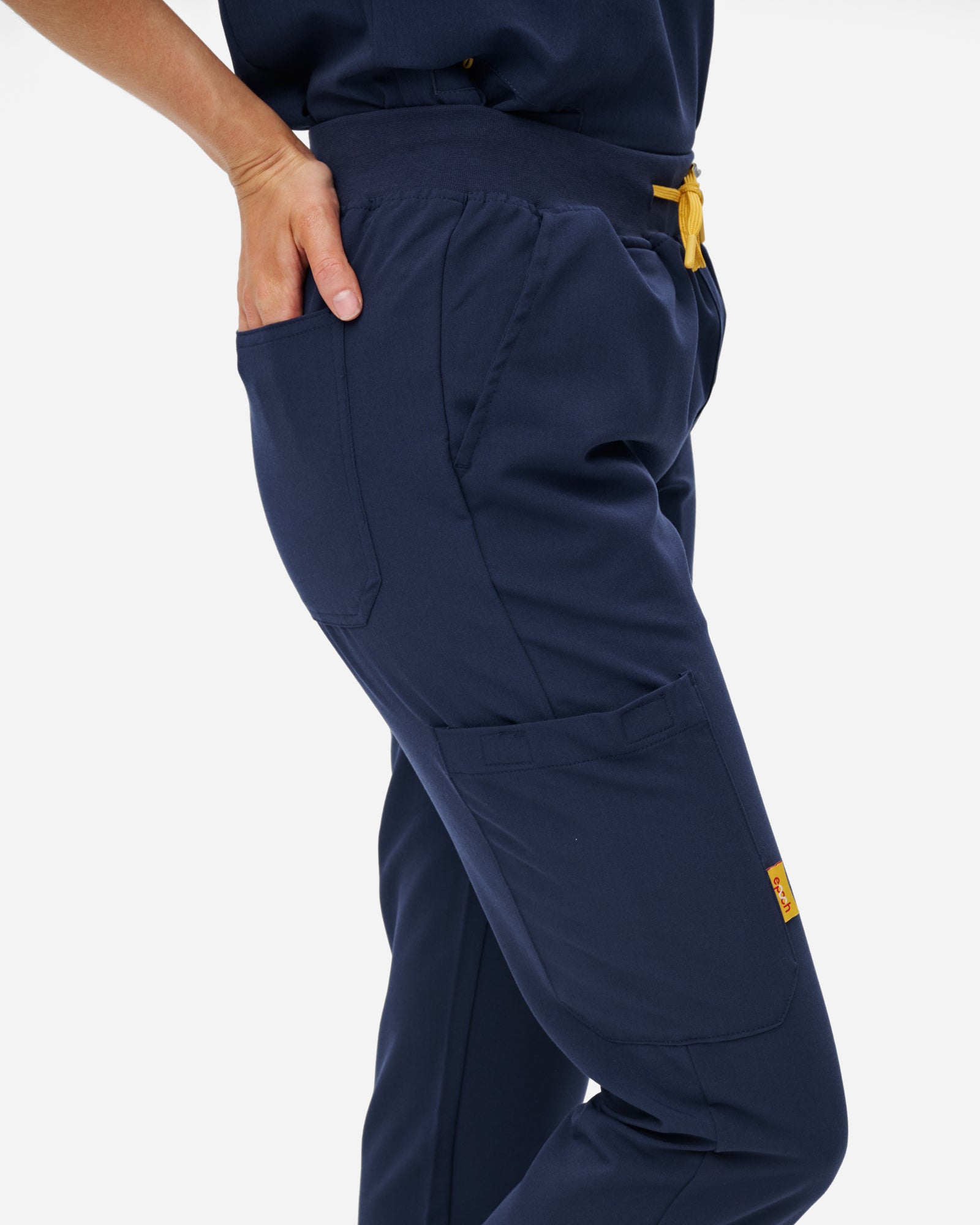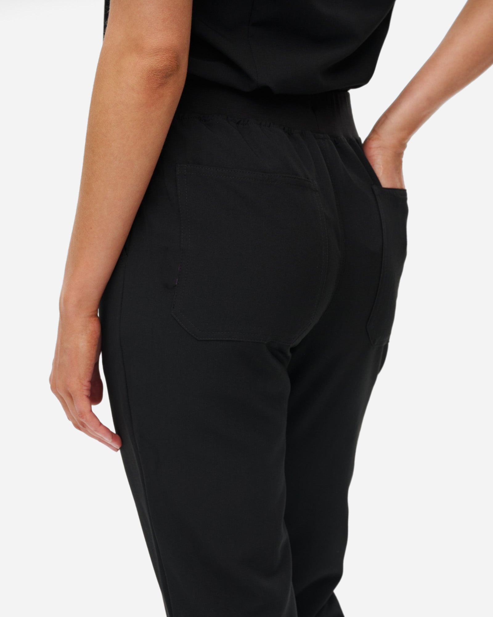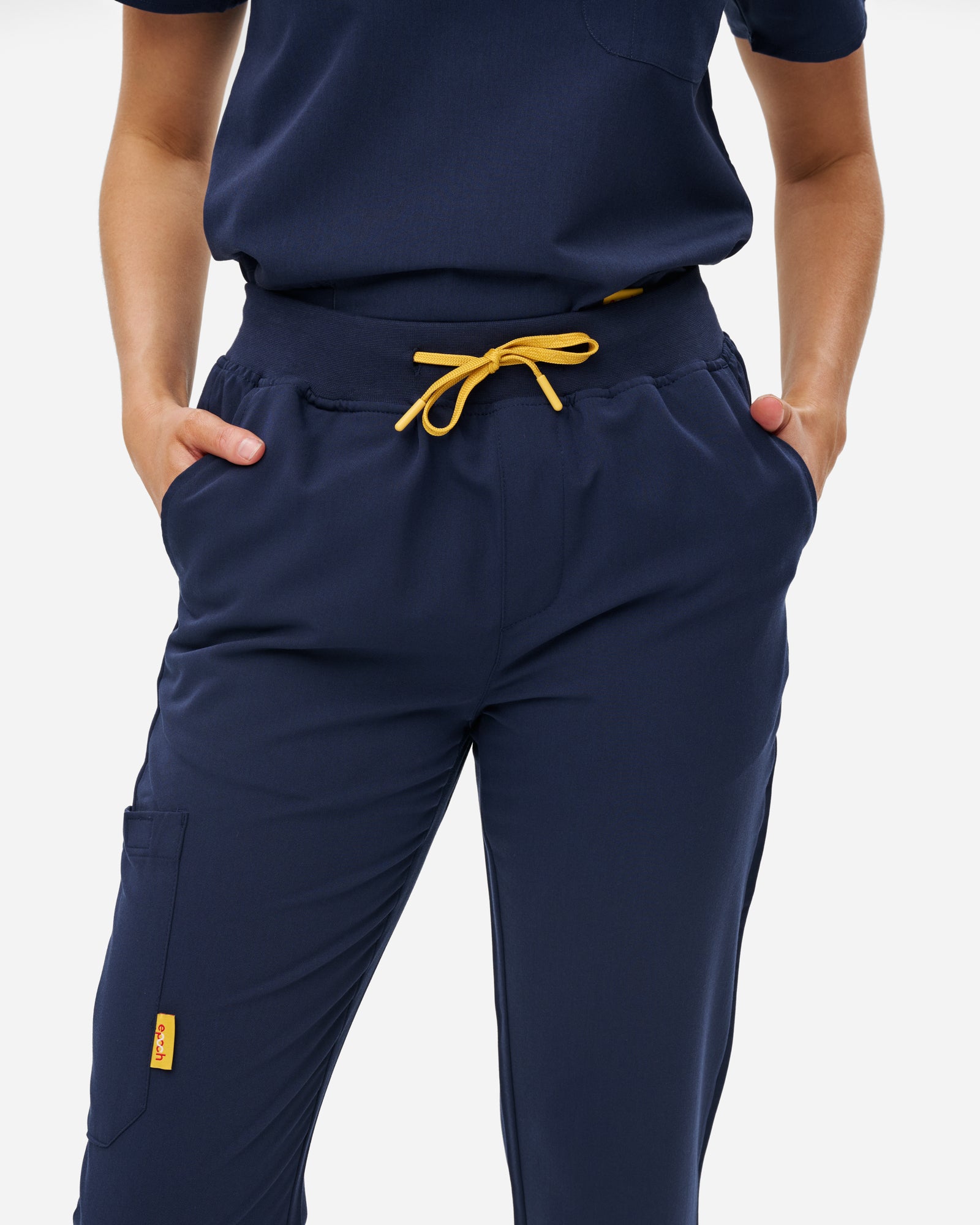 Experience unmatched comfort and durability with our Womens Scrub Jogger Pant from Epoch. Made with soft, stretchy fabric and featuring a convenient ring pocket inside the waistband and side pockets with velcro, these pants are designed for all-day wear. With a pop of color on the drawcord and cuffed legs, they are both stylish and long lasting. Upgrade your scrub game now.