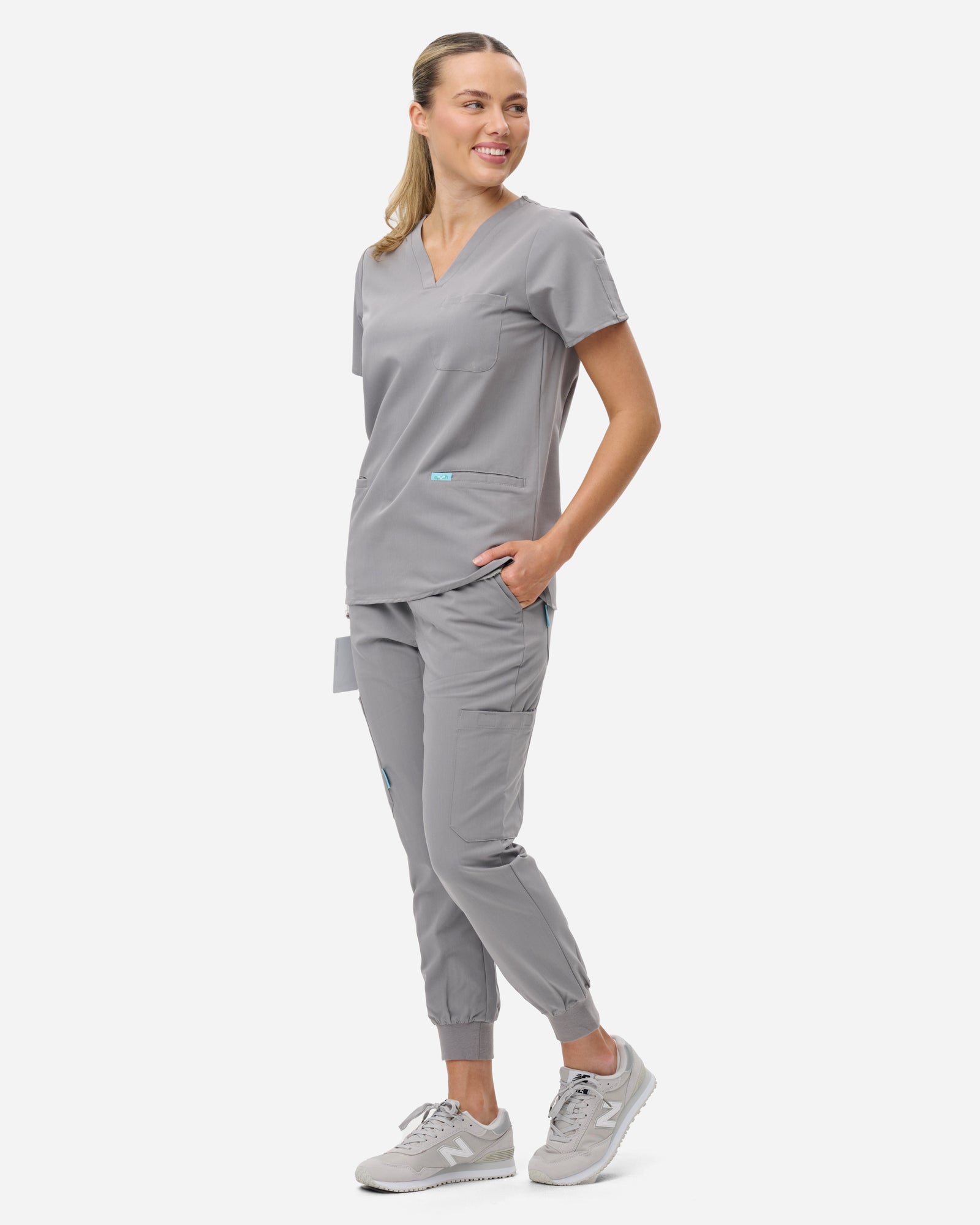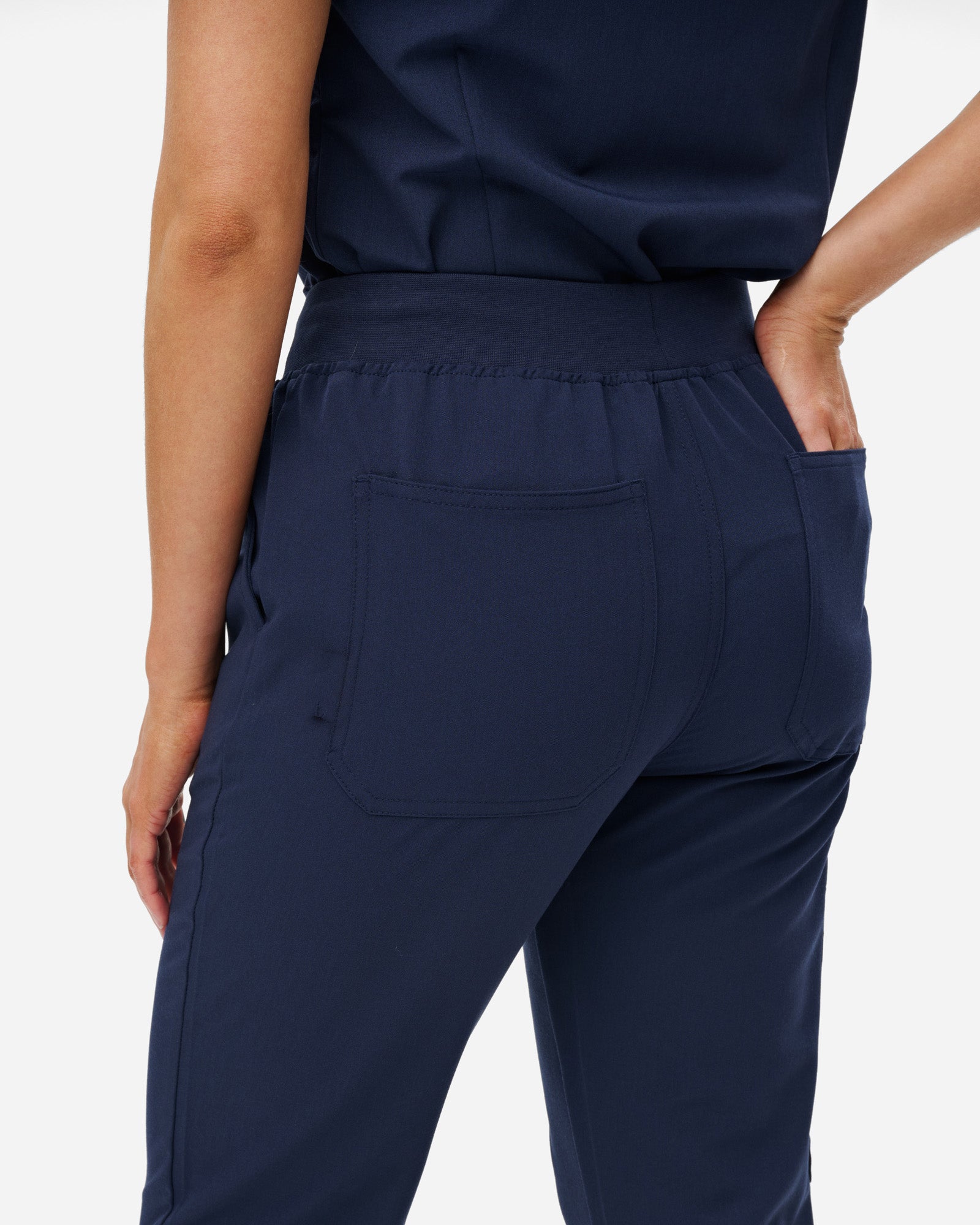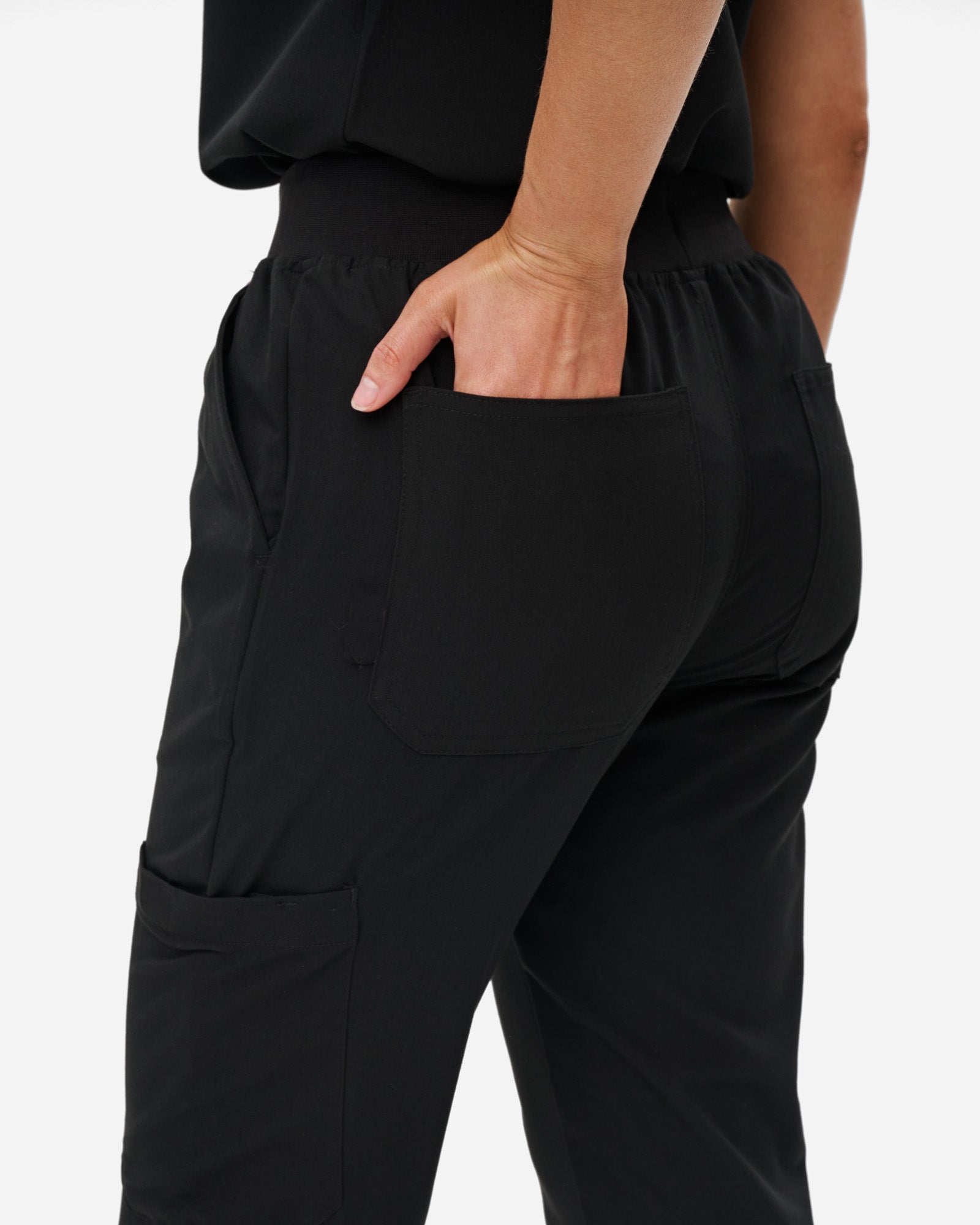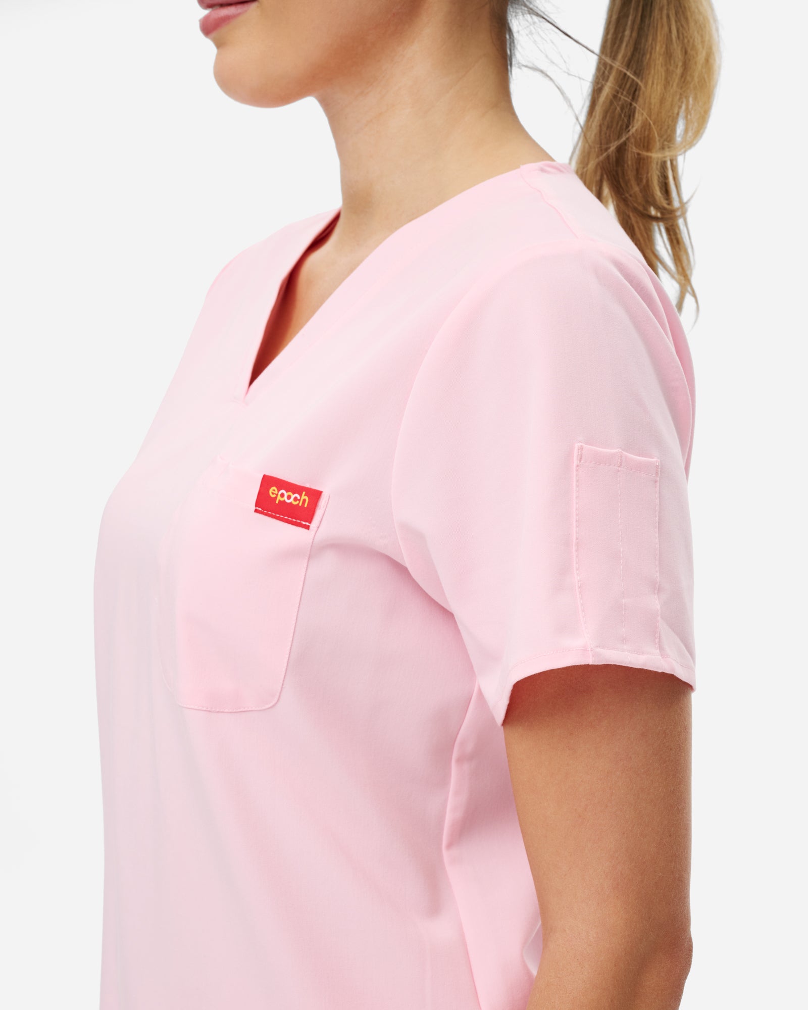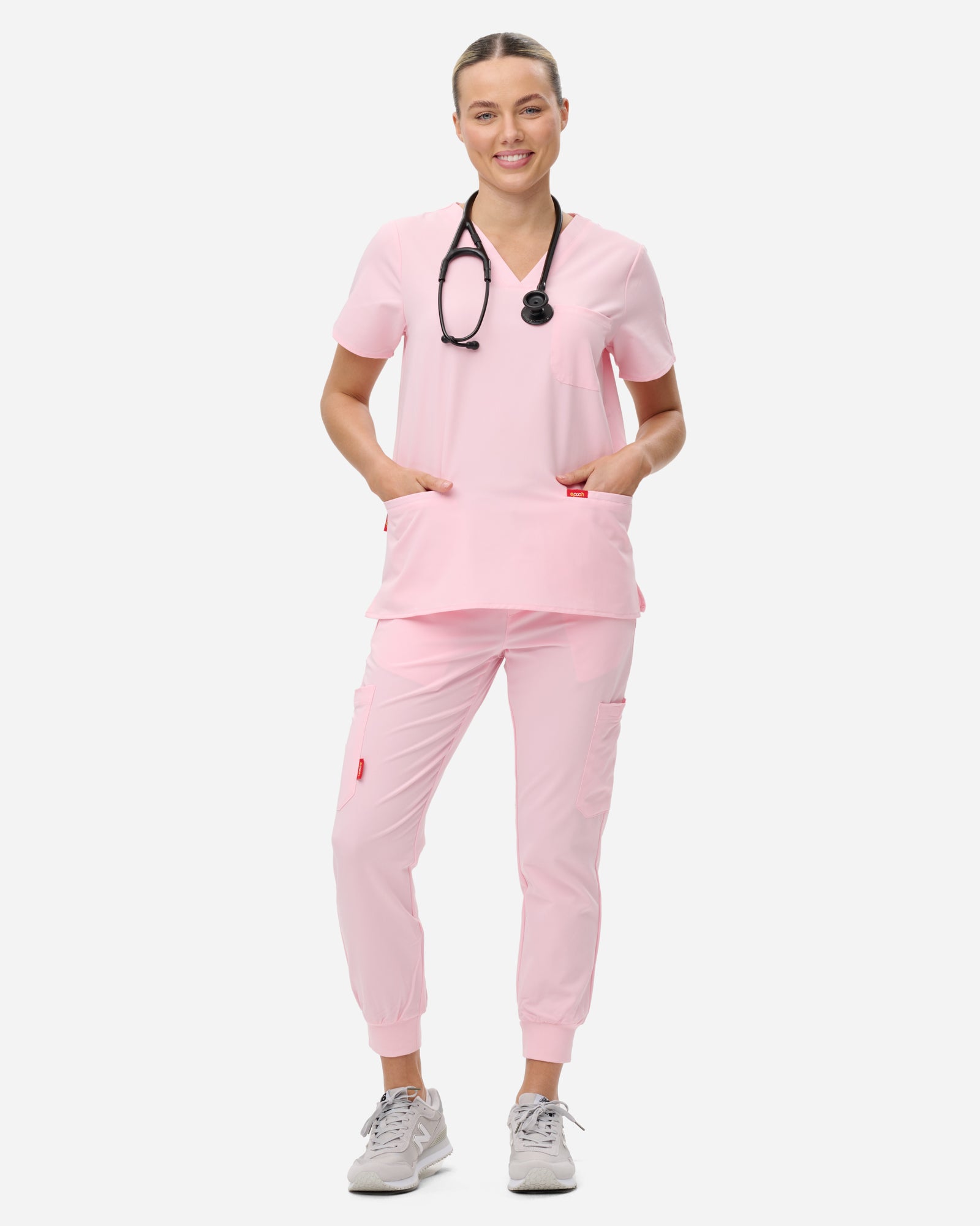 Experience unmatched comfort and durability with our Womens Scrub Jogger Pant from Epoch. Made with soft, stretchy fabric and featuring a convenient ring pocket inside the waistband and side pockets with velcro, these pants are designed for all-day wear. With a pop of color on the drawcord and cuffed legs, they are both stylish and long lasting. Upgrade your scrub game now.