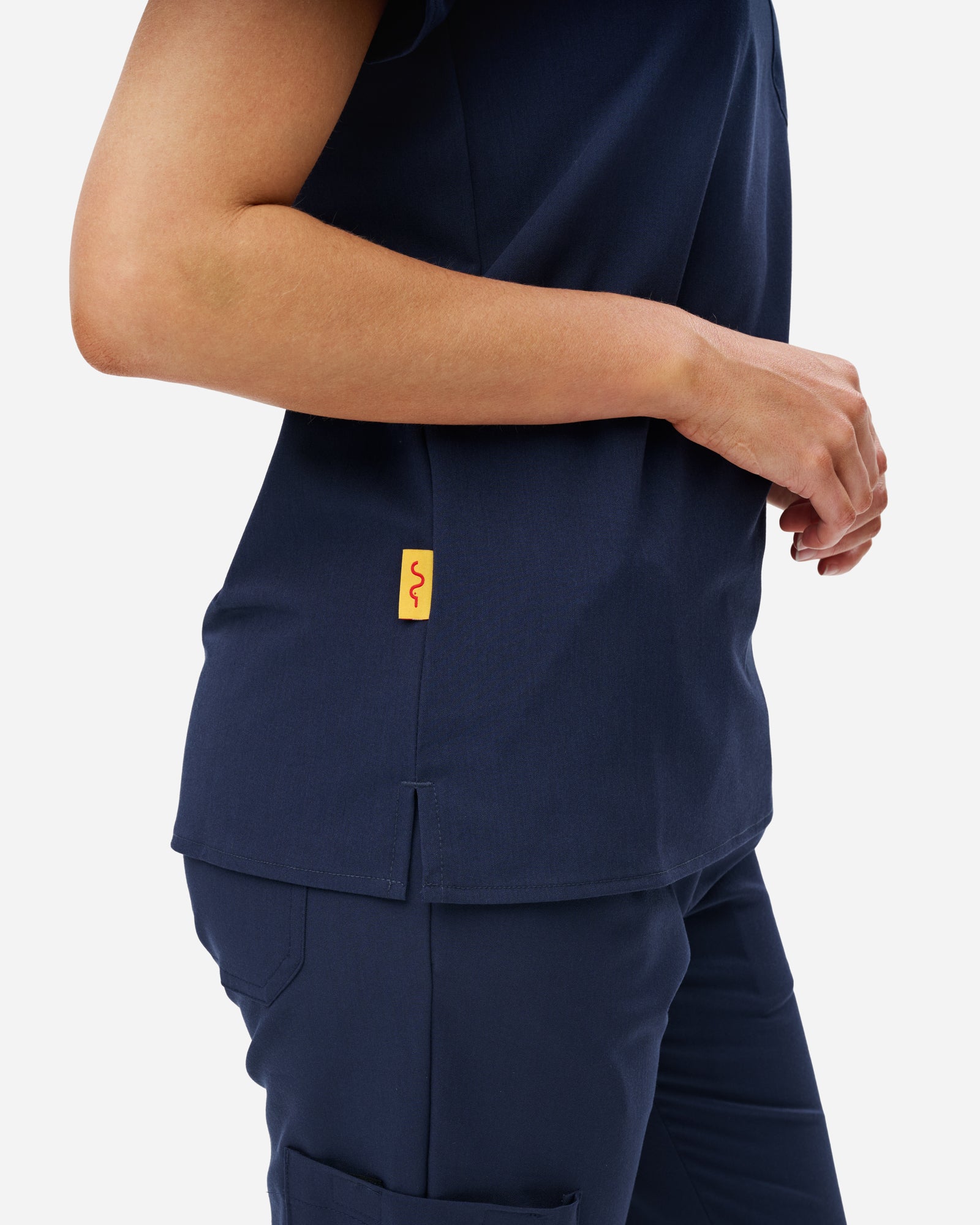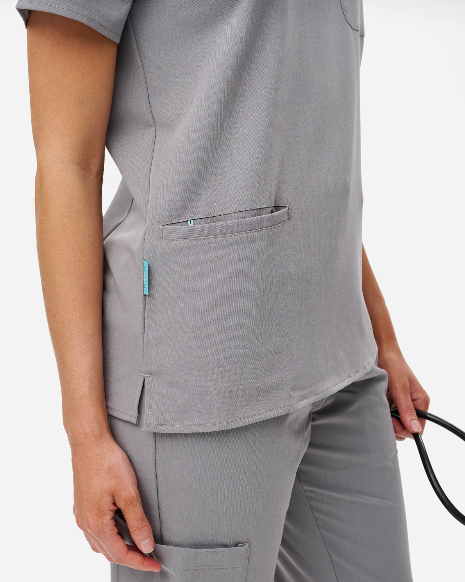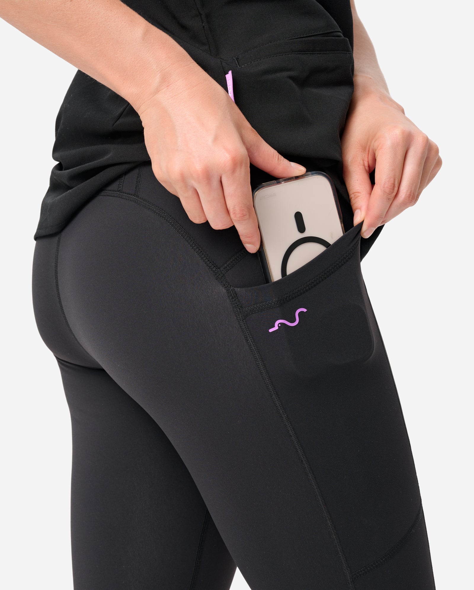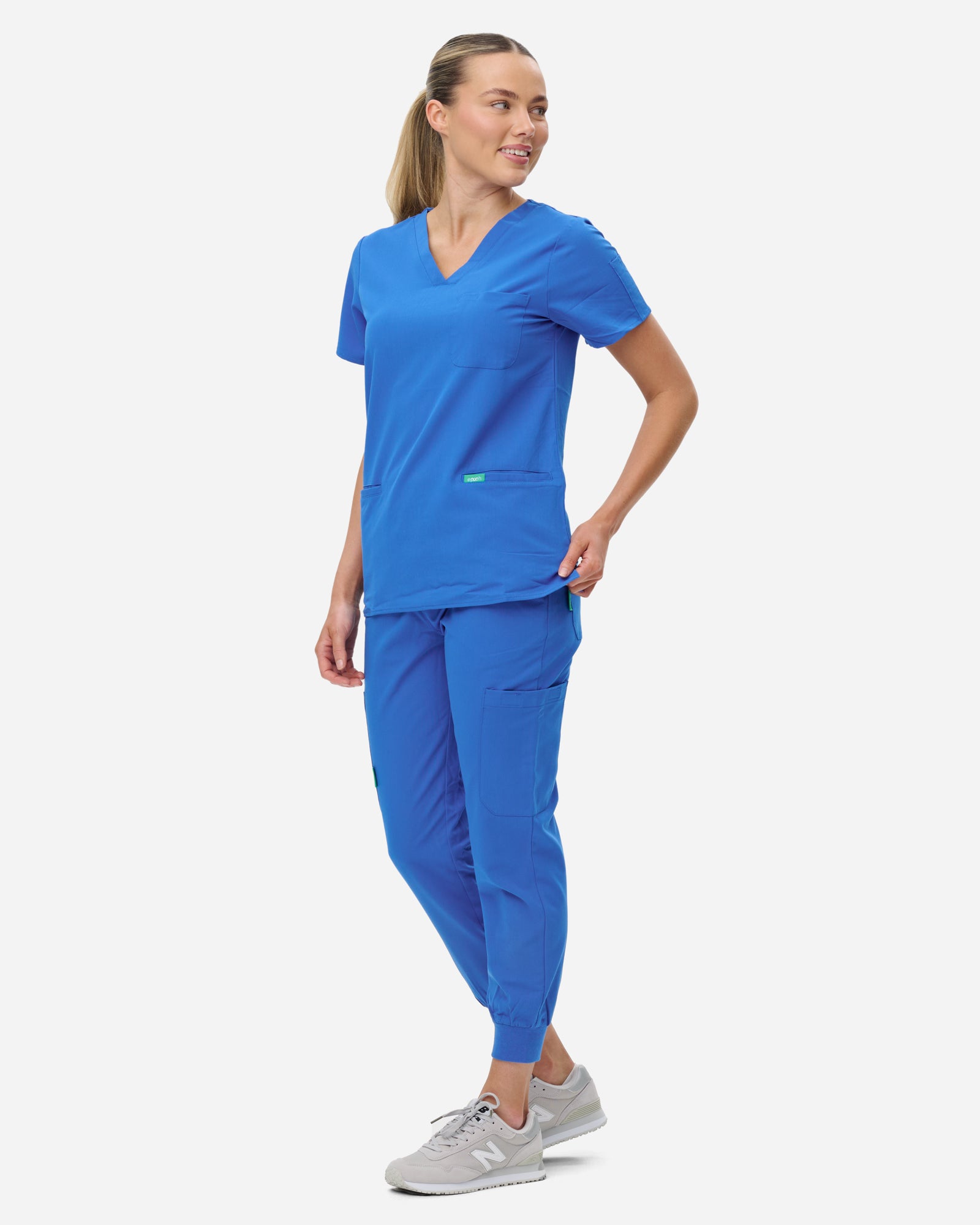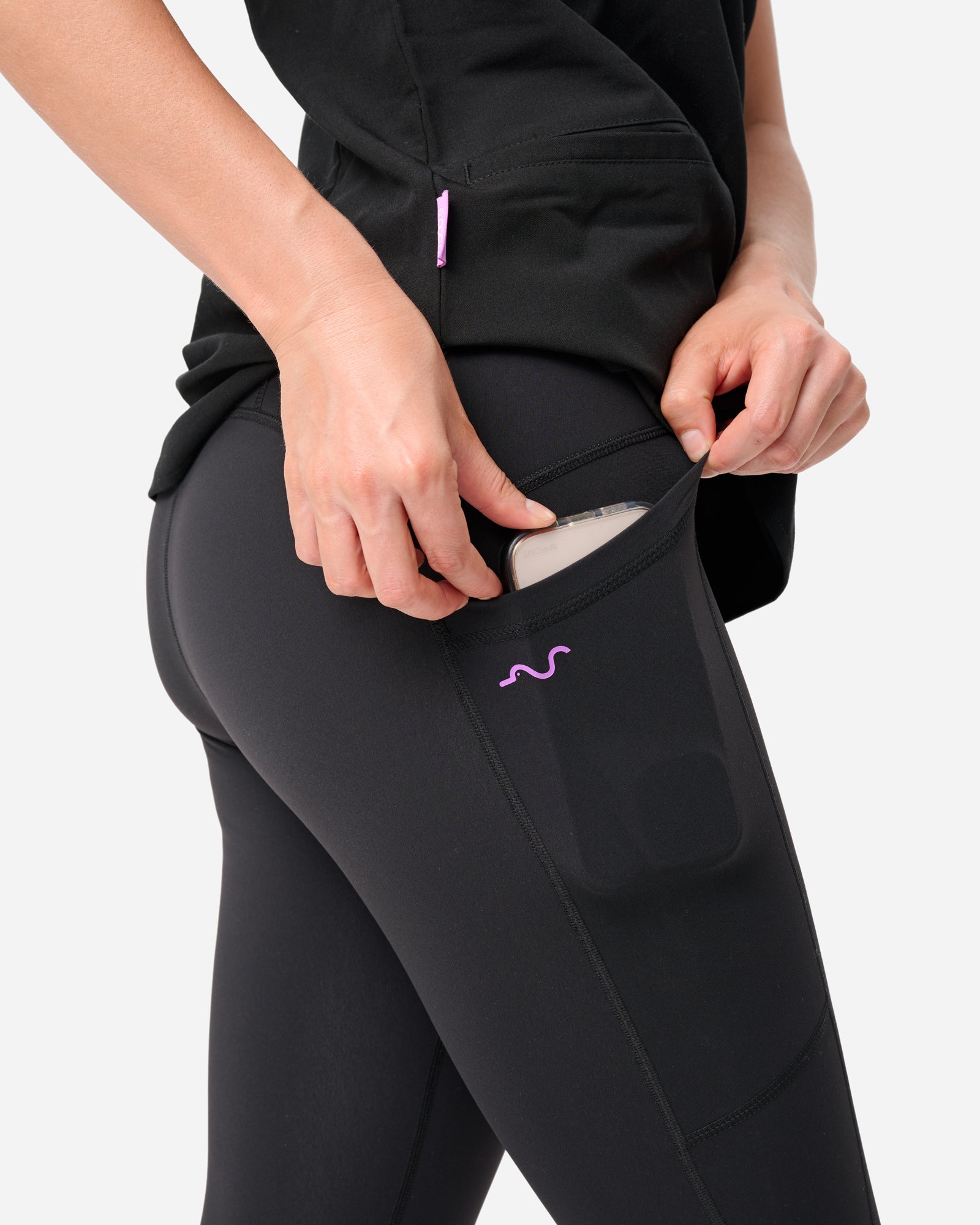 Experience unmatched comfort and durability with our Womens Scrub Jogger Pant from Epoch. Made with soft, stretchy fabric and featuring a convenient ring pocket inside the waistband and side pockets with velcro, these pants are designed for all-day wear. With a pop of color on the drawcord and cuffed legs, they are both stylish and long lasting. Upgrade your scrub game now.