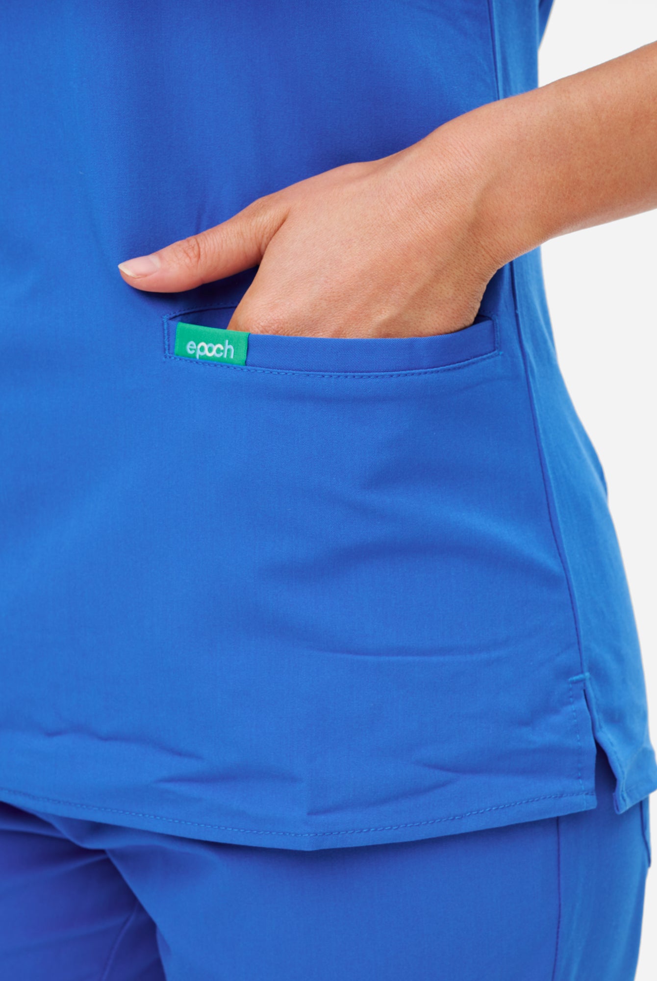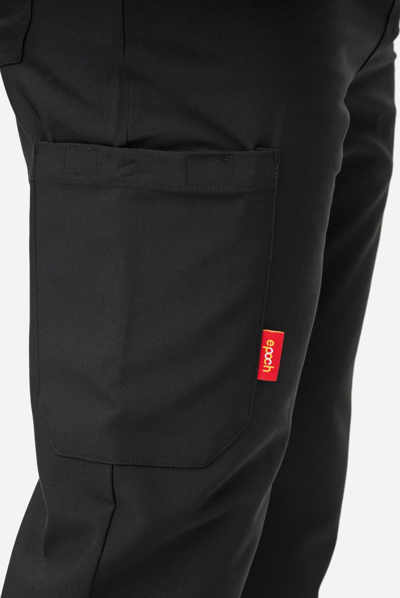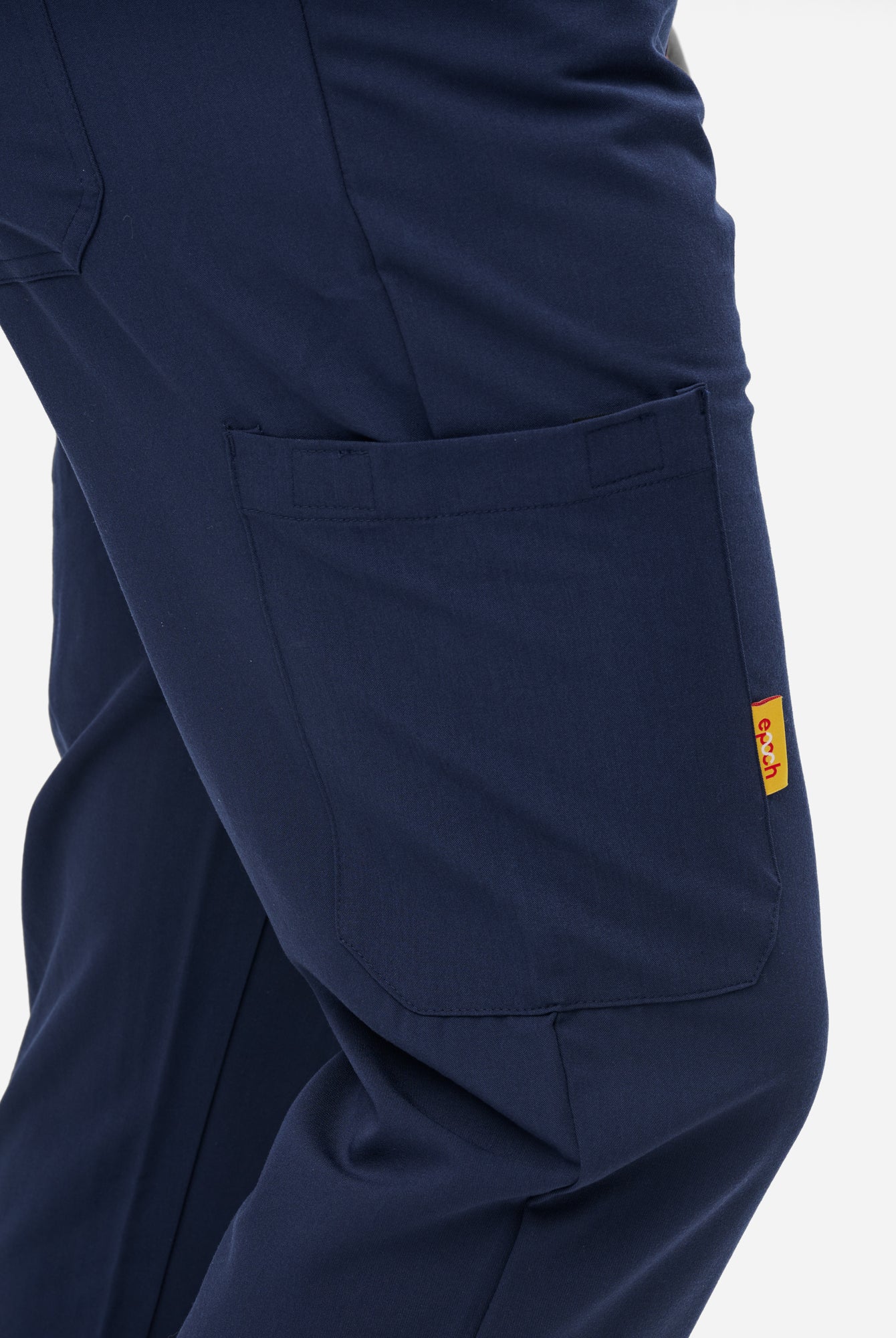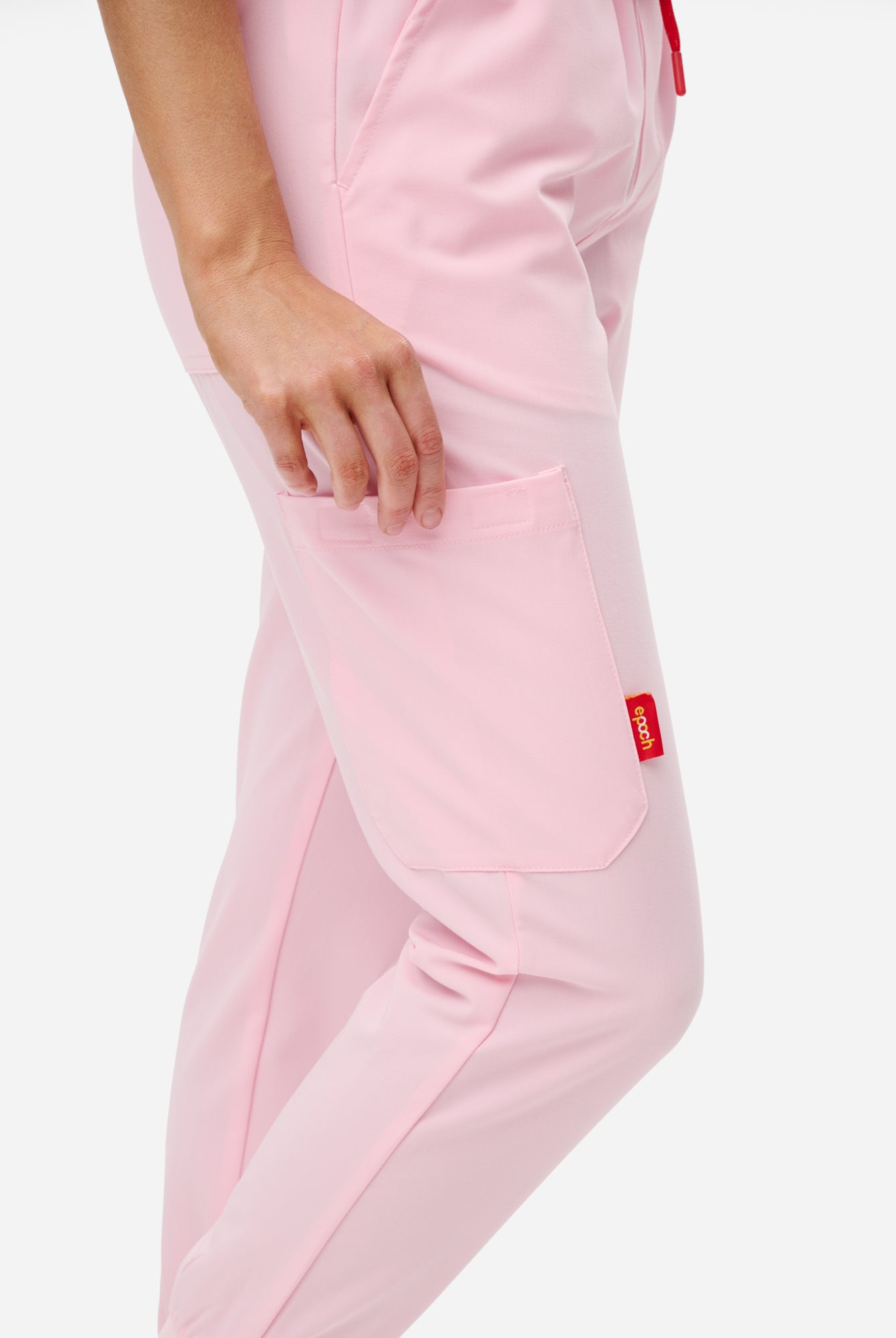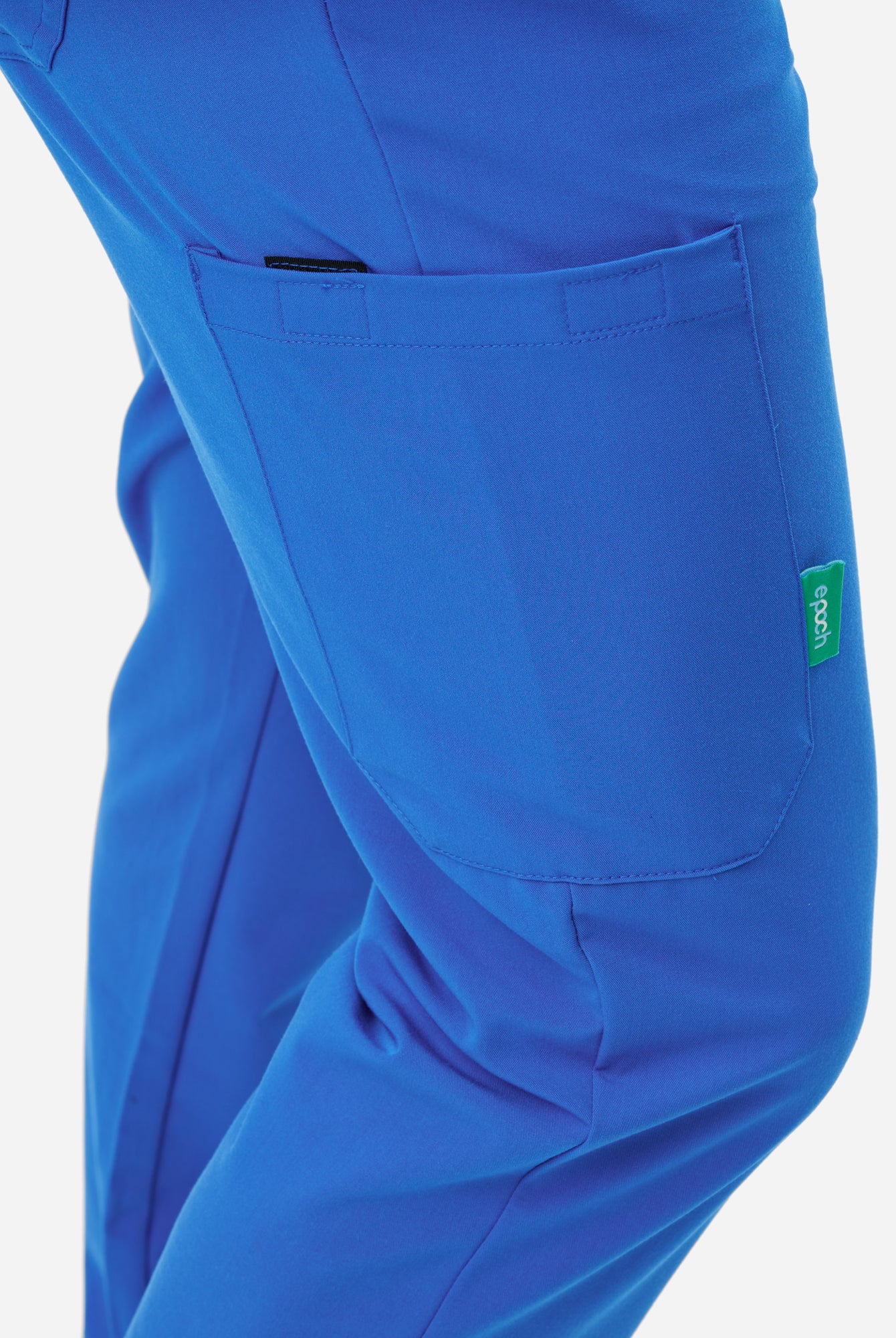 Experience unmatched comfort and durability with our Womens Scrub Jogger Pant from Epoch. Made with soft, stretchy fabric and featuring a convenient ring pocket inside the waistband and side pockets with velcro, these pants are designed for all-day wear. With a pop of color on the drawcord and cuffed legs, they are both stylish and long lasting. Upgrade your scrub game now.