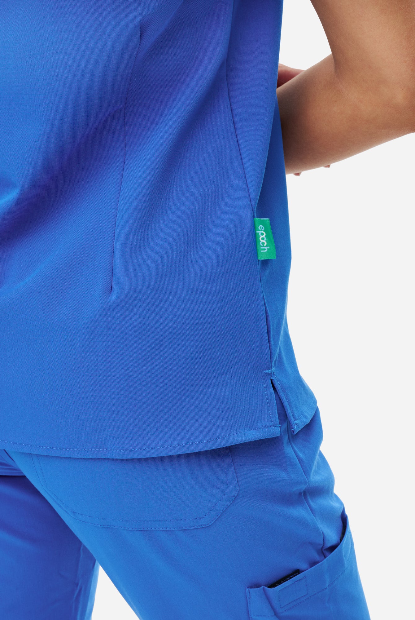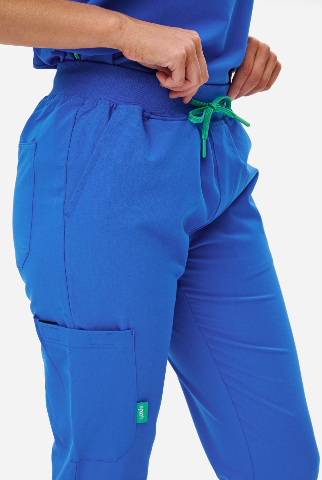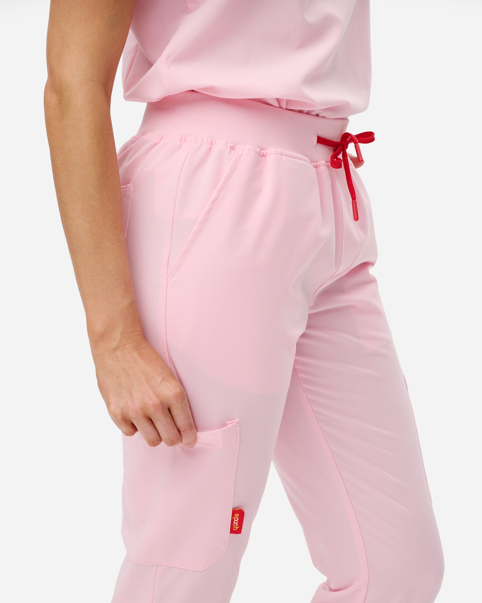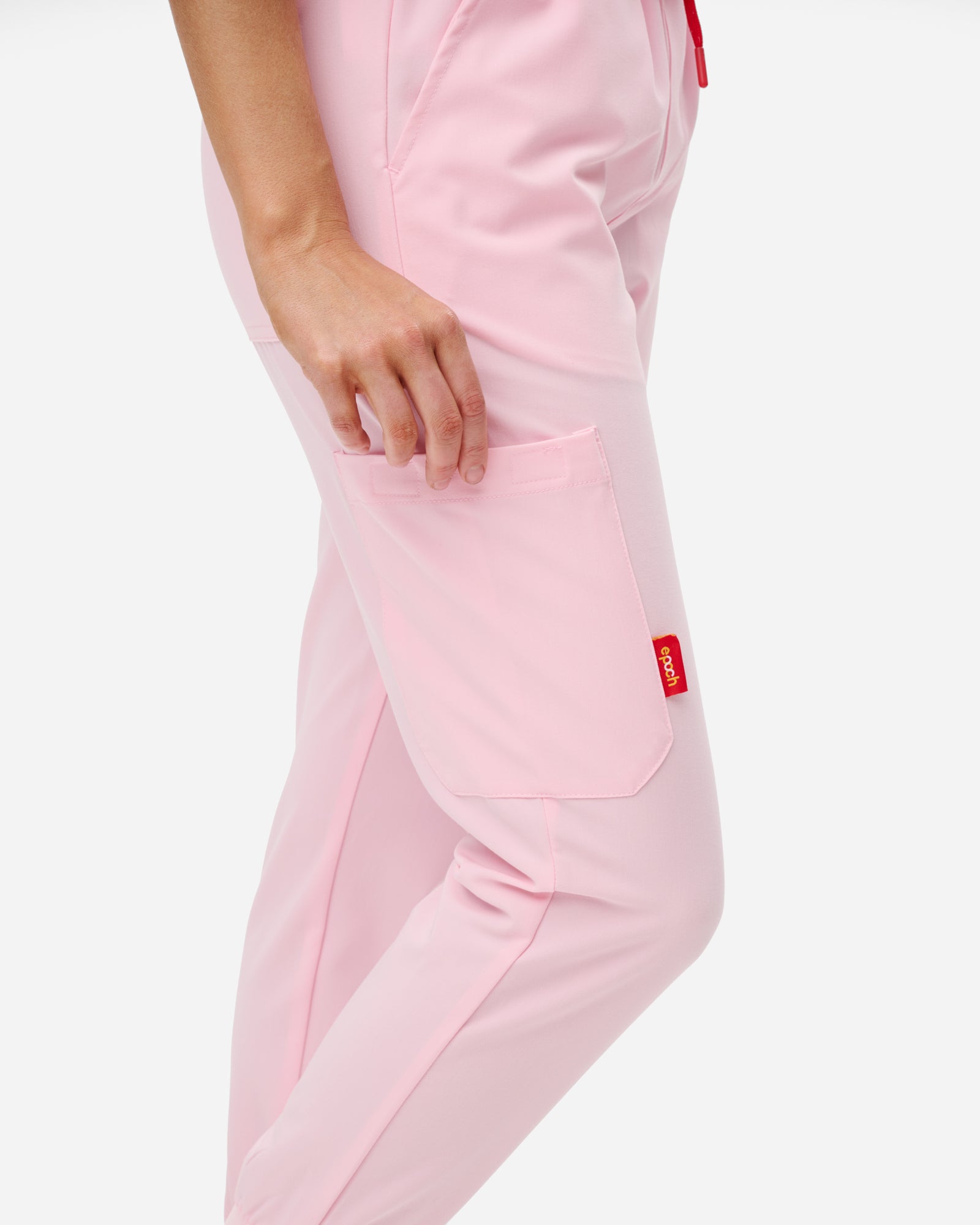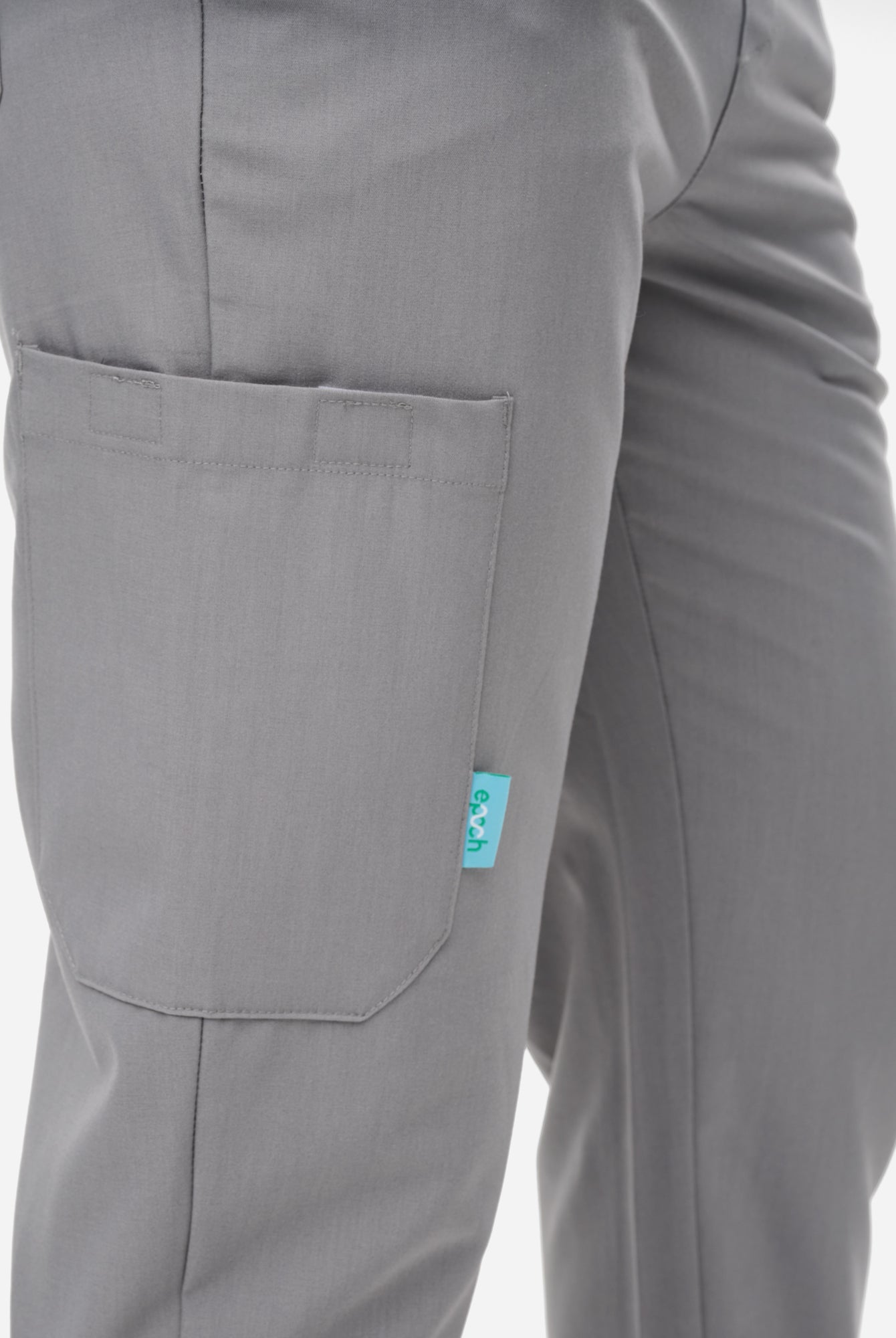 Experience unmatched comfort and durability with our Womens Scrub Jogger Pant from Epoch. Made with soft, stretchy fabric and featuring a convenient ring pocket inside the waistband and side pockets with velcro, these pants are designed for all-day wear. With a pop of color on the drawcord and cuffed legs, they are both stylish and long lasting. Upgrade your scrub game now.