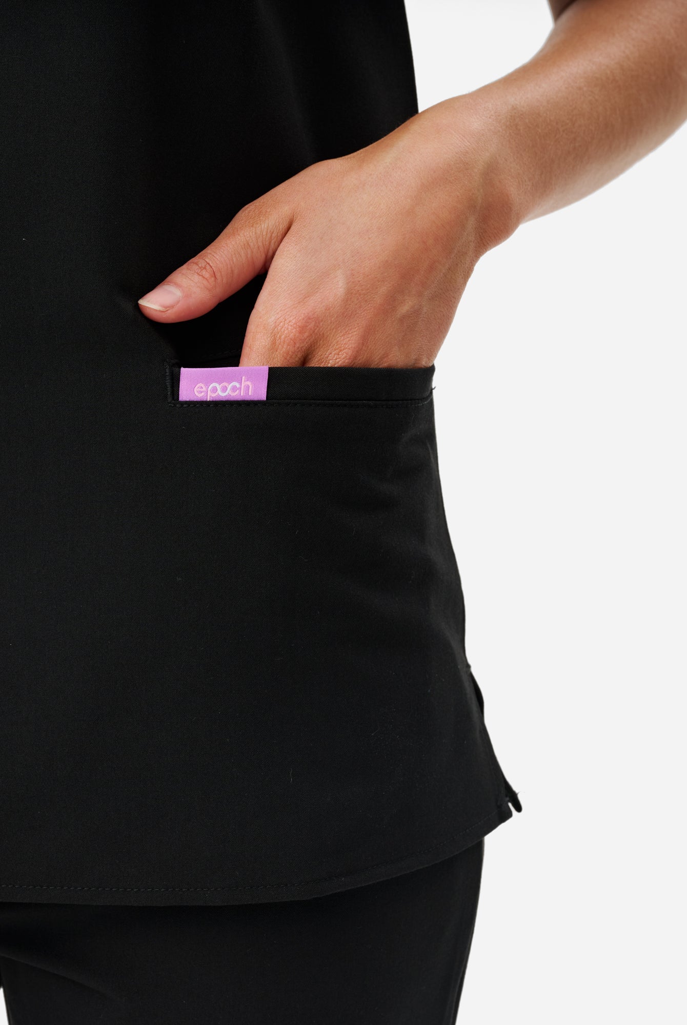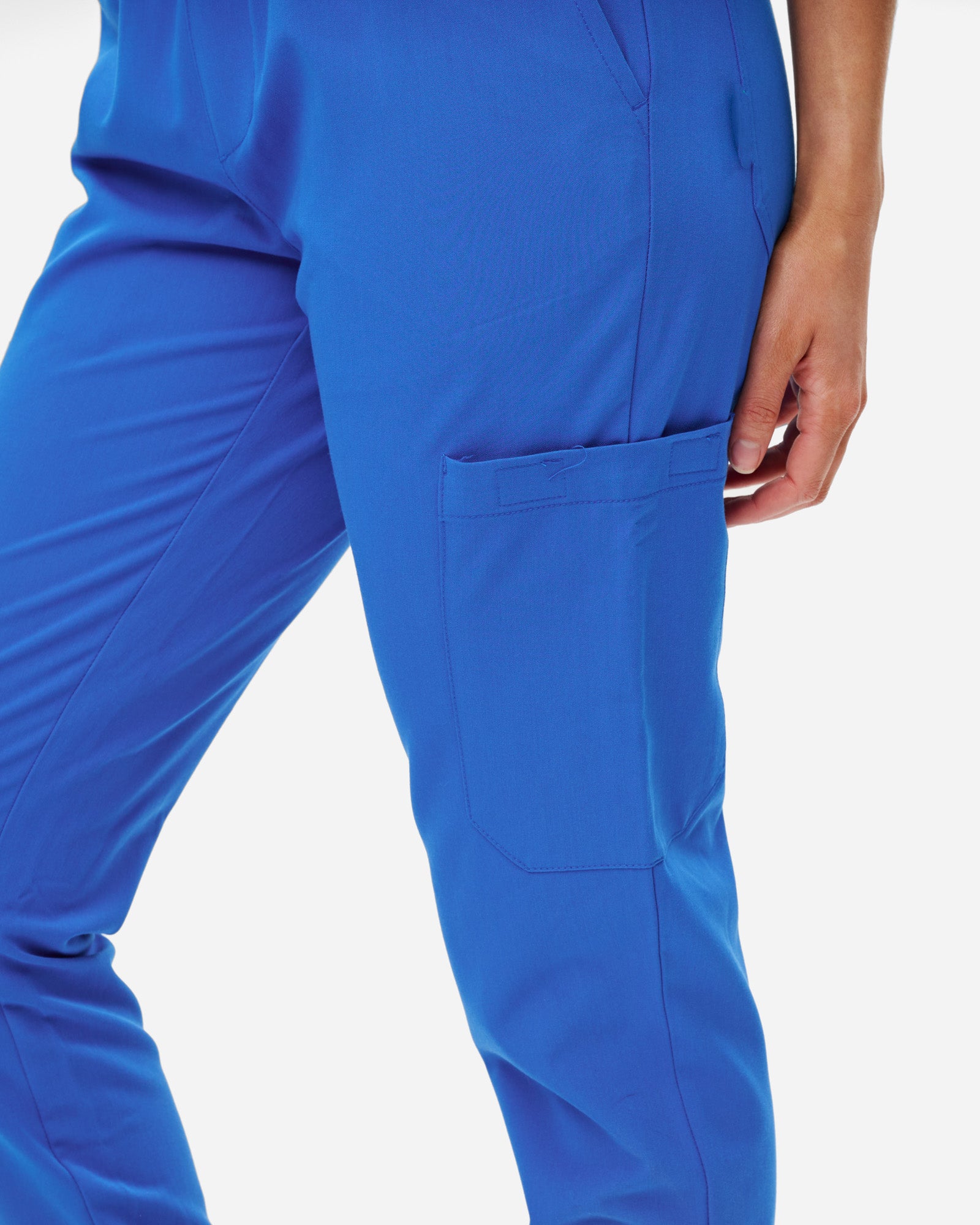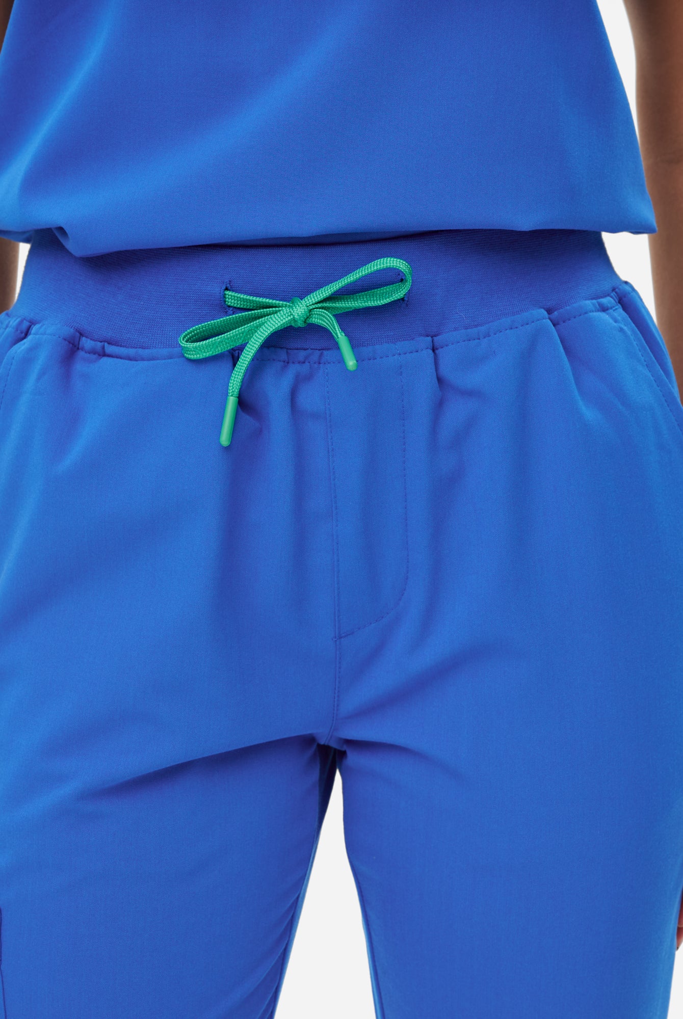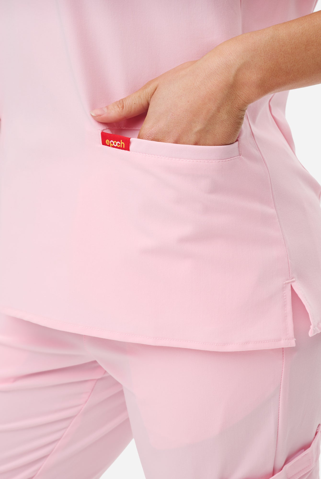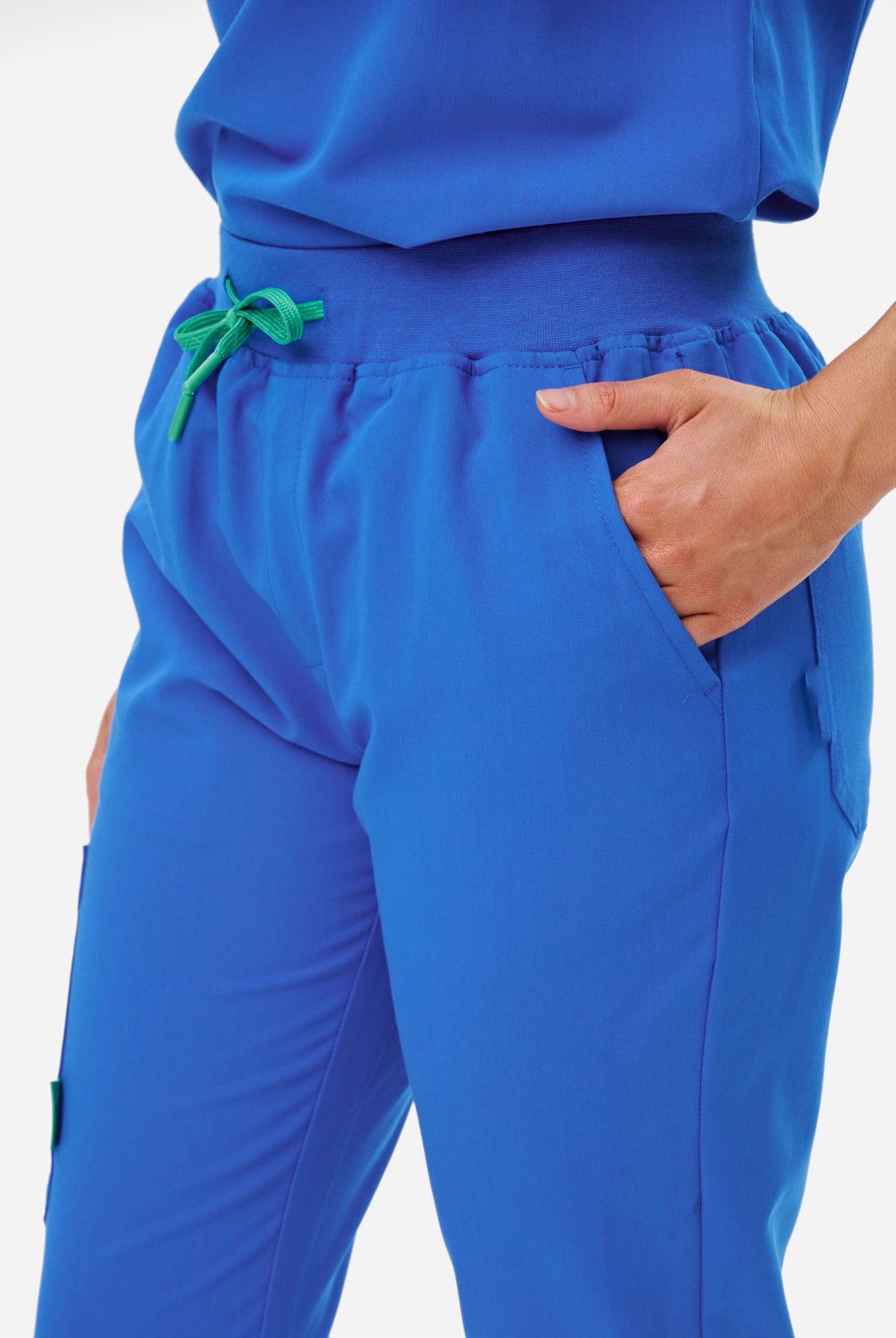 Experience unmatched comfort and durability with our Womens Scrub Jogger Pant from Epoch. Made with soft, stretchy fabric and featuring a convenient ring pocket inside the waistband and side pockets with velcro, these pants are designed for all-day wear. With a pop of color on the drawcord and cuffed legs, they are both stylish and long lasting. Upgrade your scrub game now.