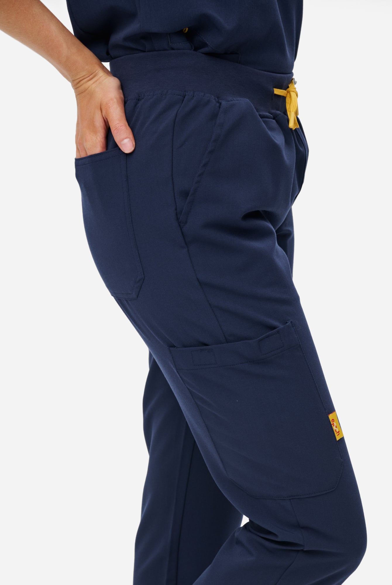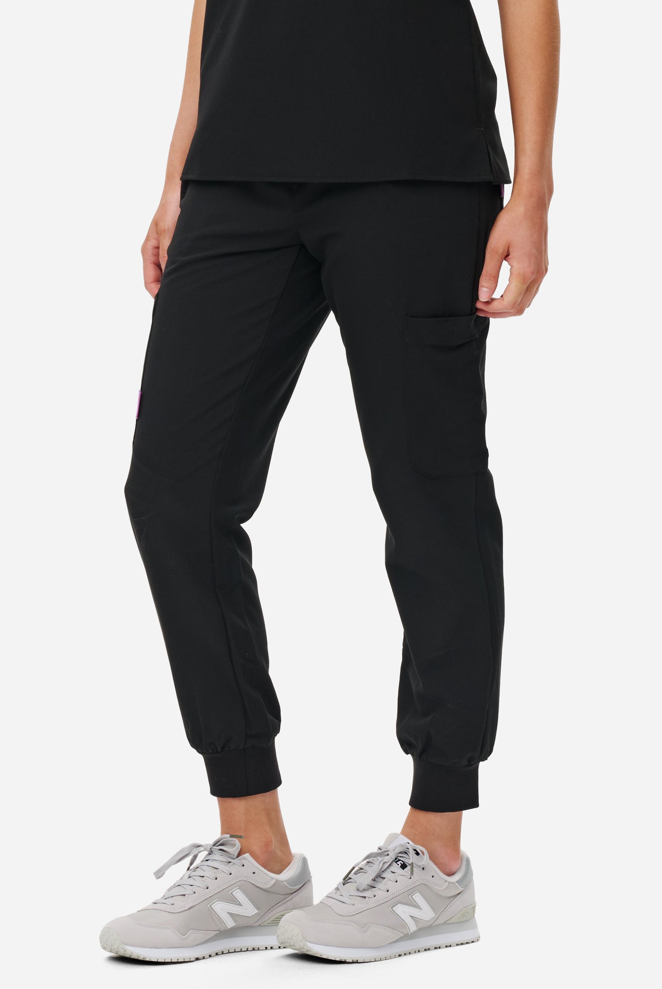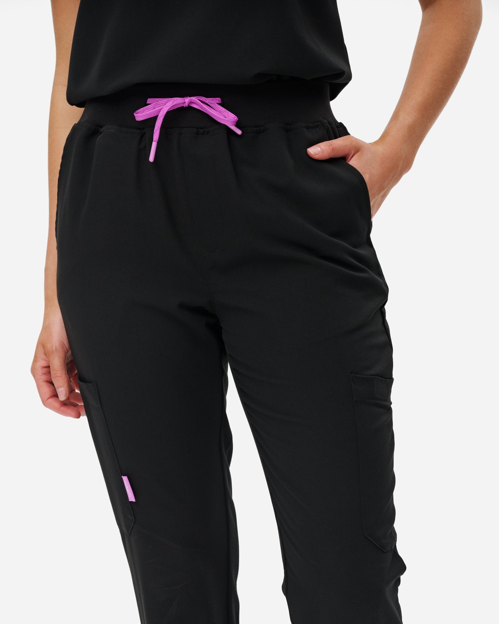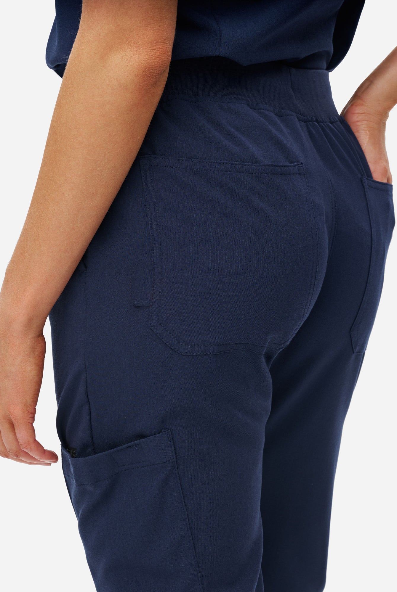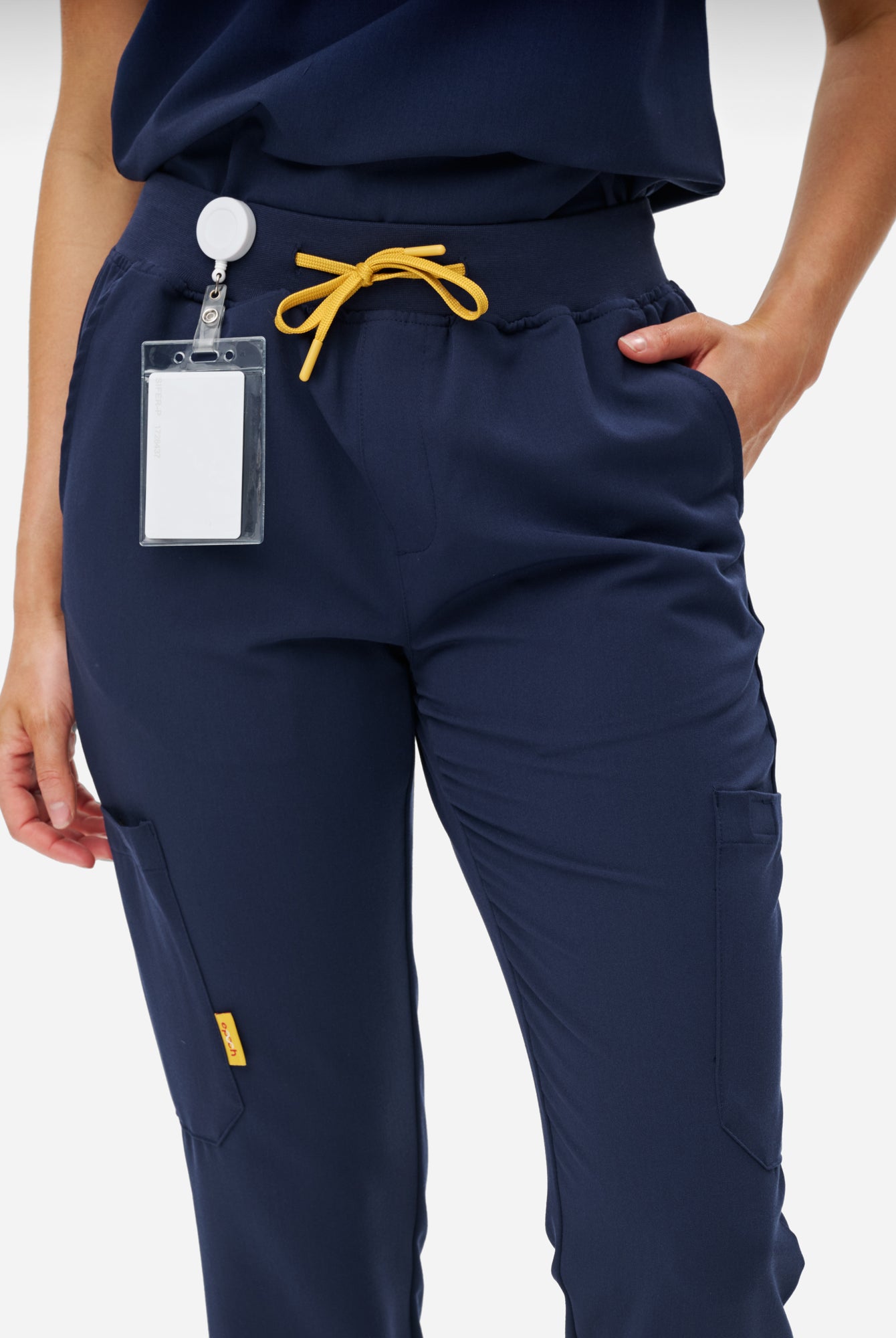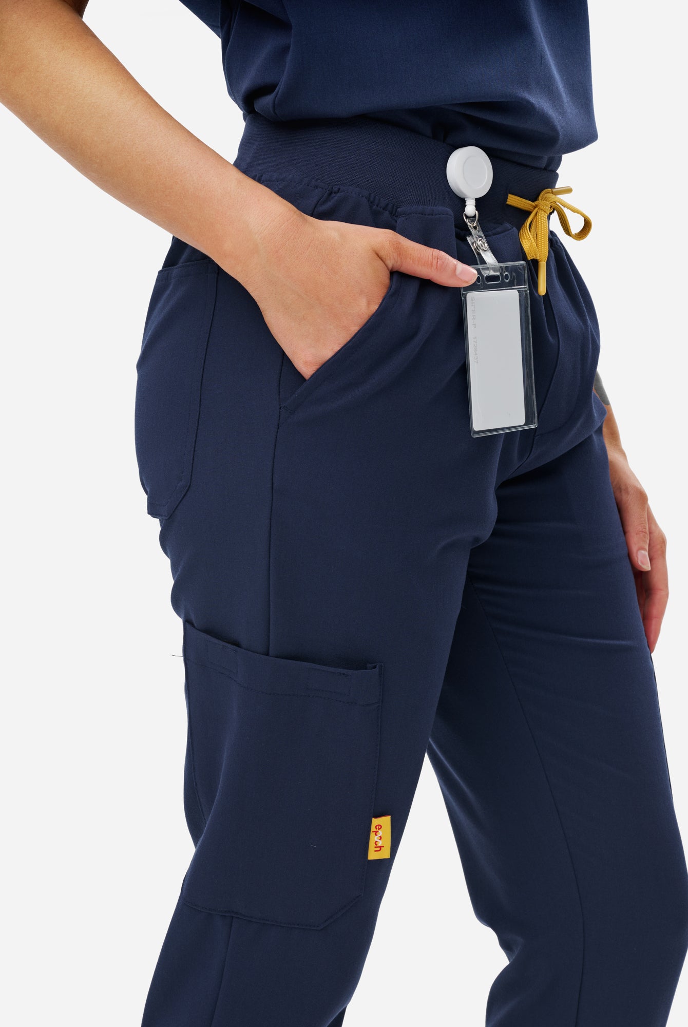Experience unmatched comfort and durability with our Womens Scrub Jogger Pant from Epoch. Made with soft, stretchy fabric and featuring a convenient ring pocket inside the waistband and side pockets with velcro, these pants are designed for all-day wear. With a pop of color on the drawcord and cuffed legs, they are both stylish and long lasting. Upgrade your scrub game now.
