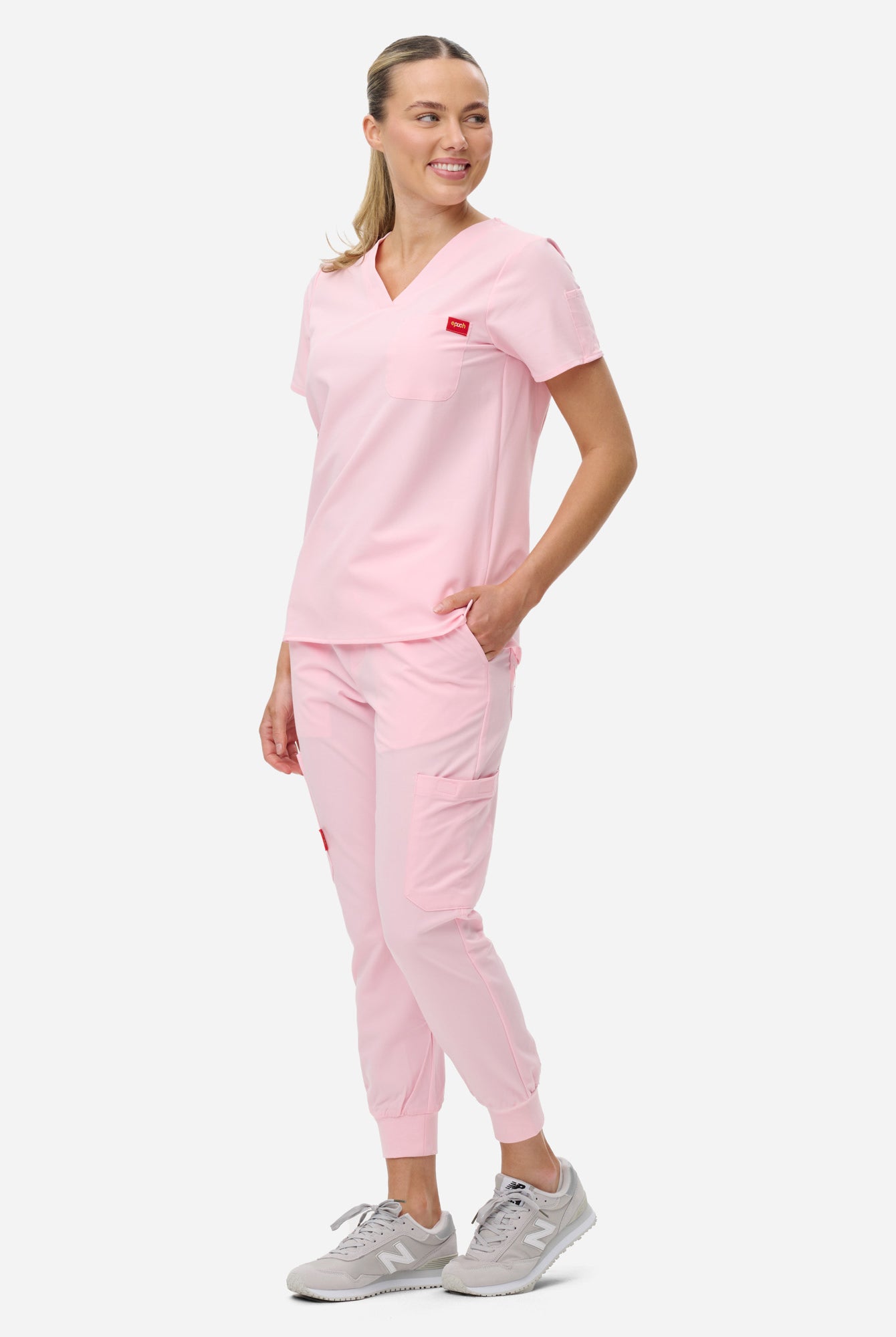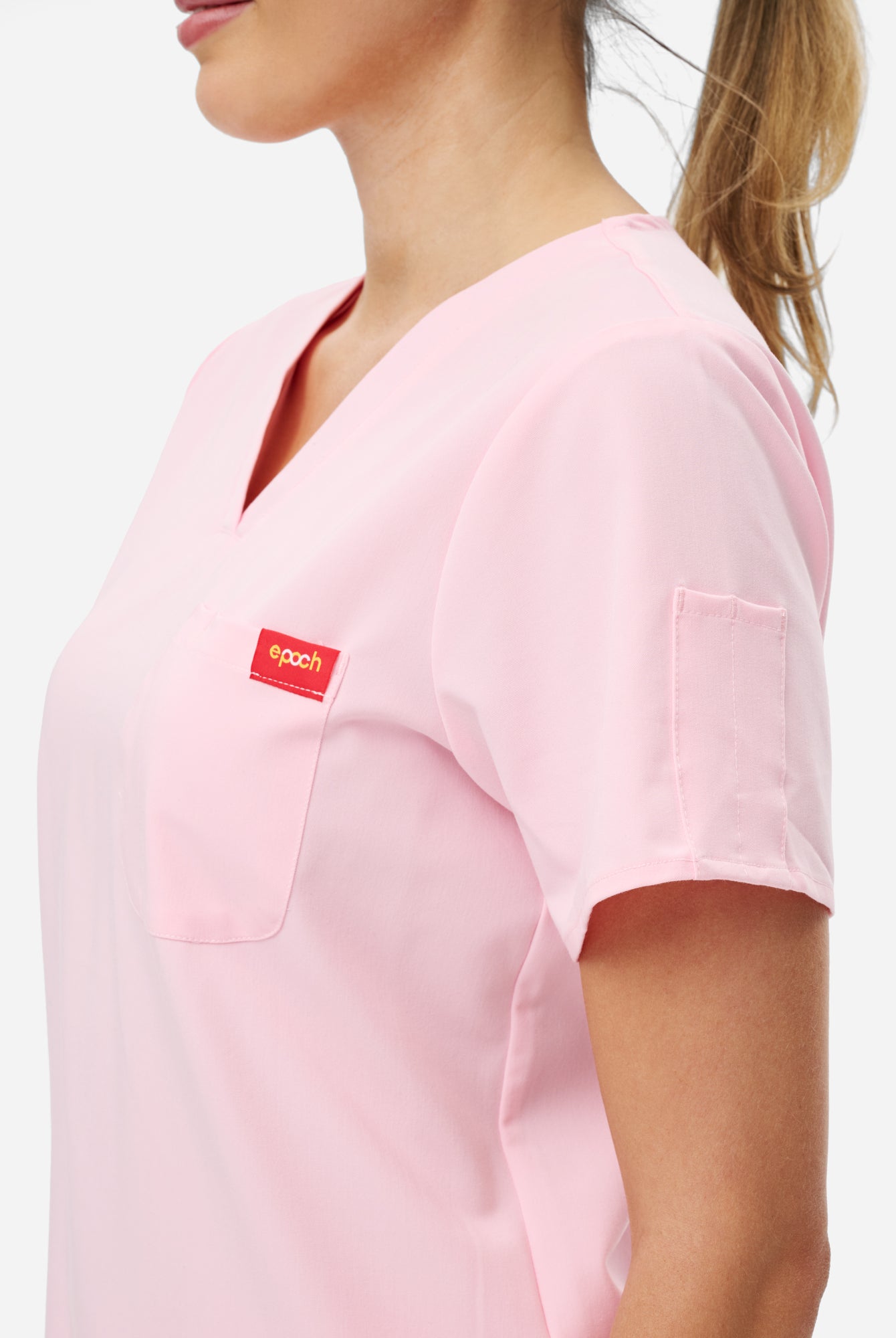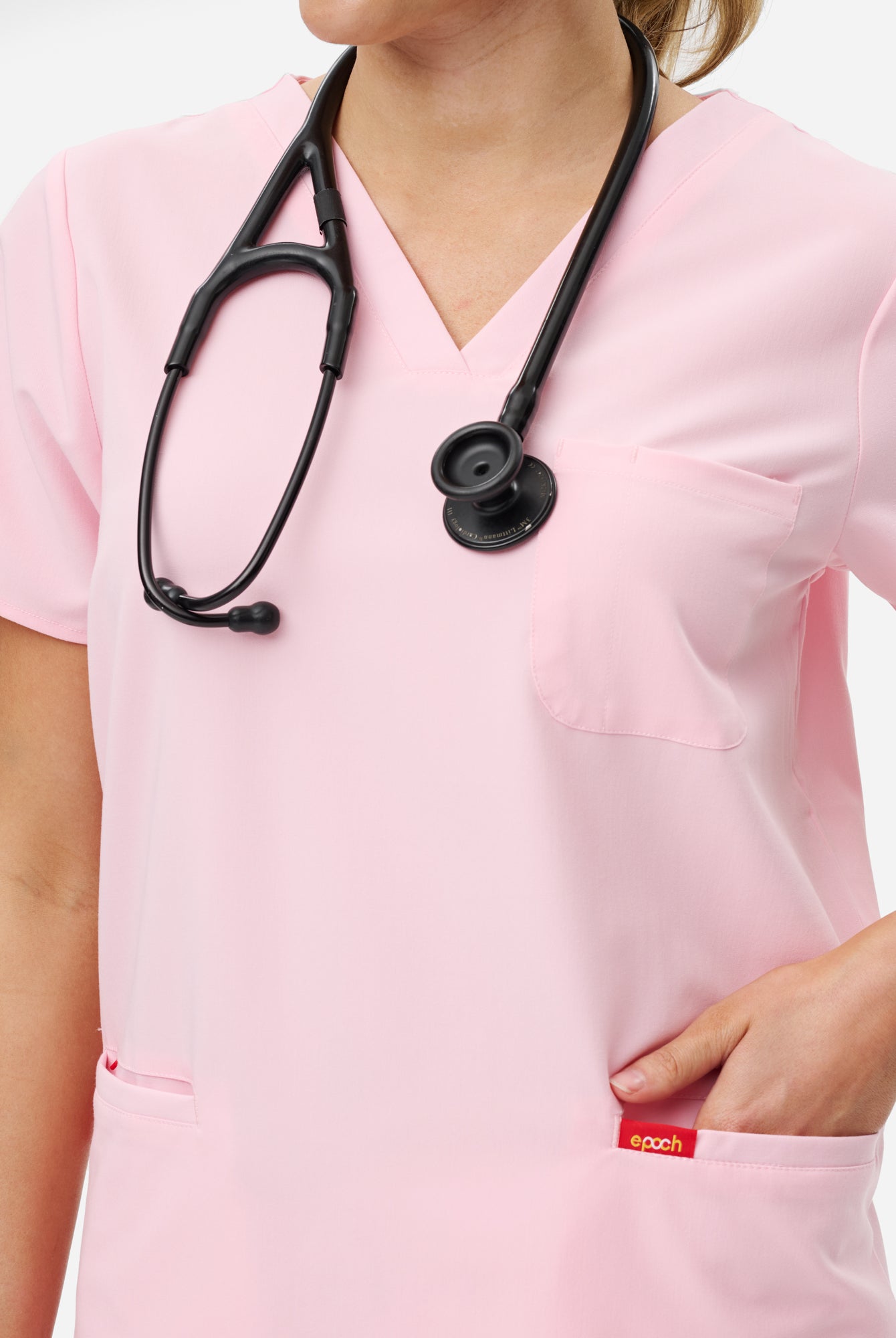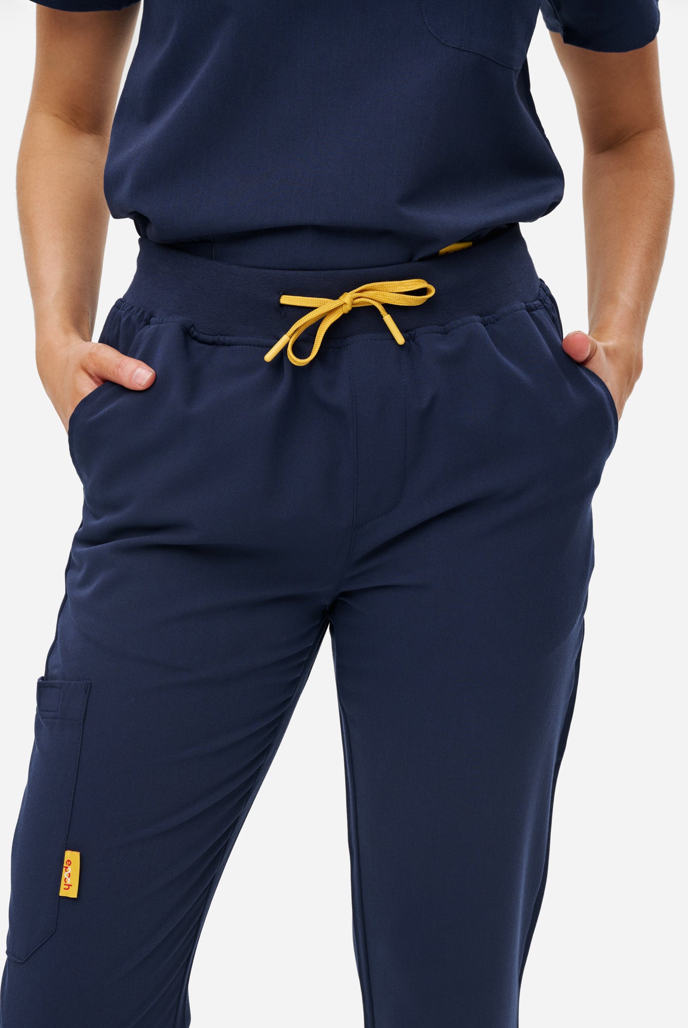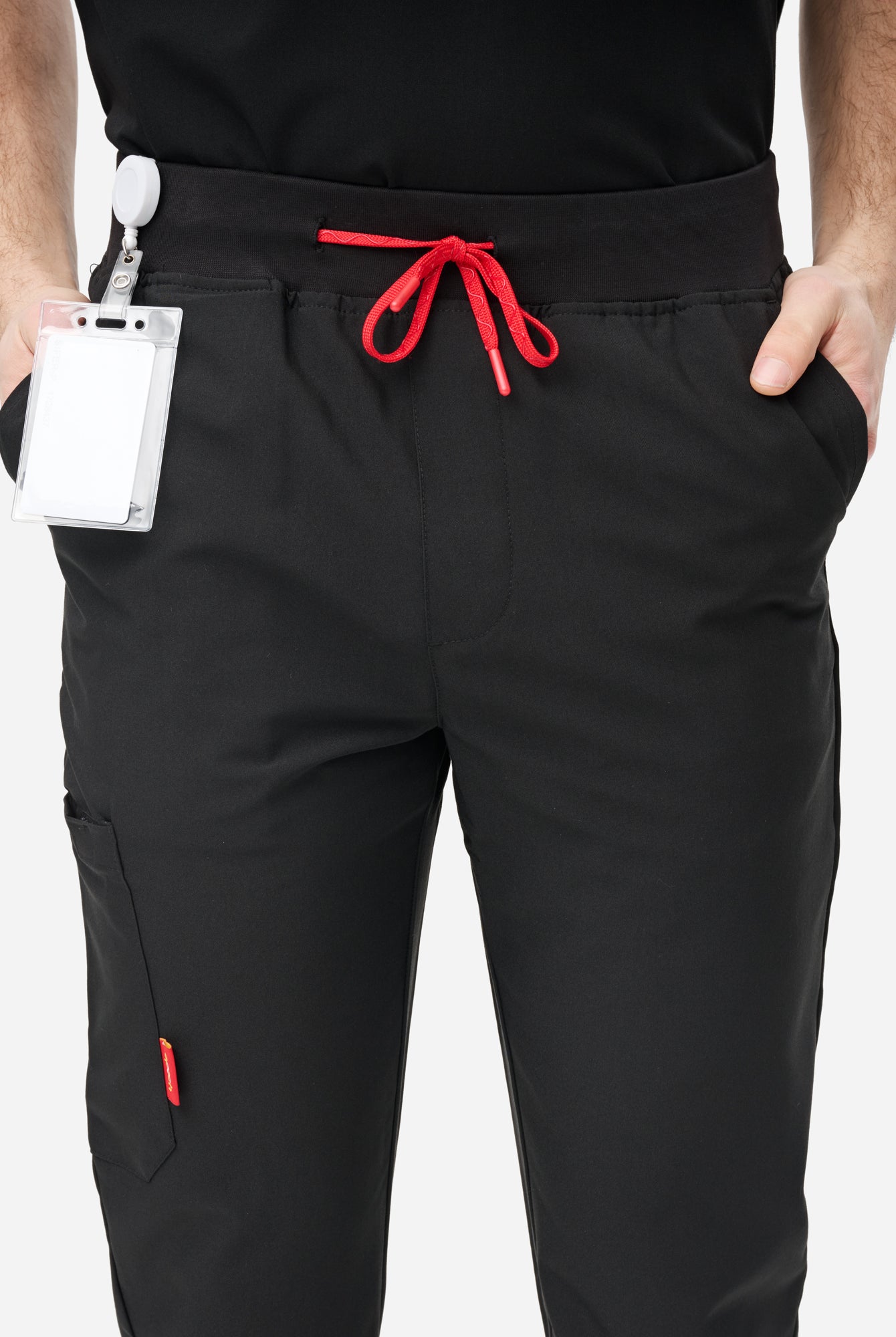 Experience unmatched comfort and durability with our Womens Scrub Jogger Pant from Epoch. Made with soft, stretchy fabric and featuring a convenient ring pocket inside the waistband and side pockets with velcro, these pants are designed for all-day wear. With a pop of color on the drawcord and cuffed legs, they are both stylish and long lasting. Upgrade your scrub game now.
