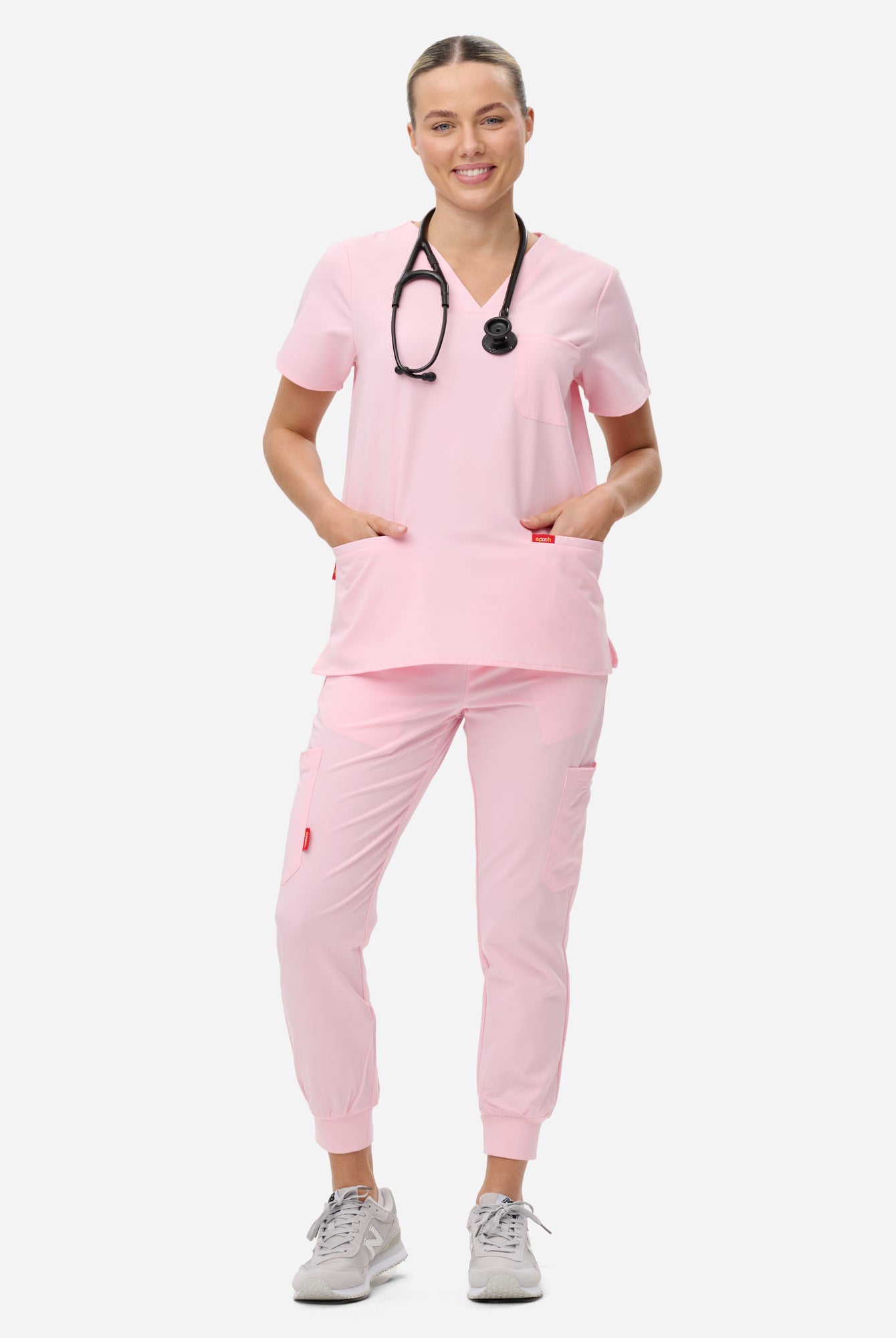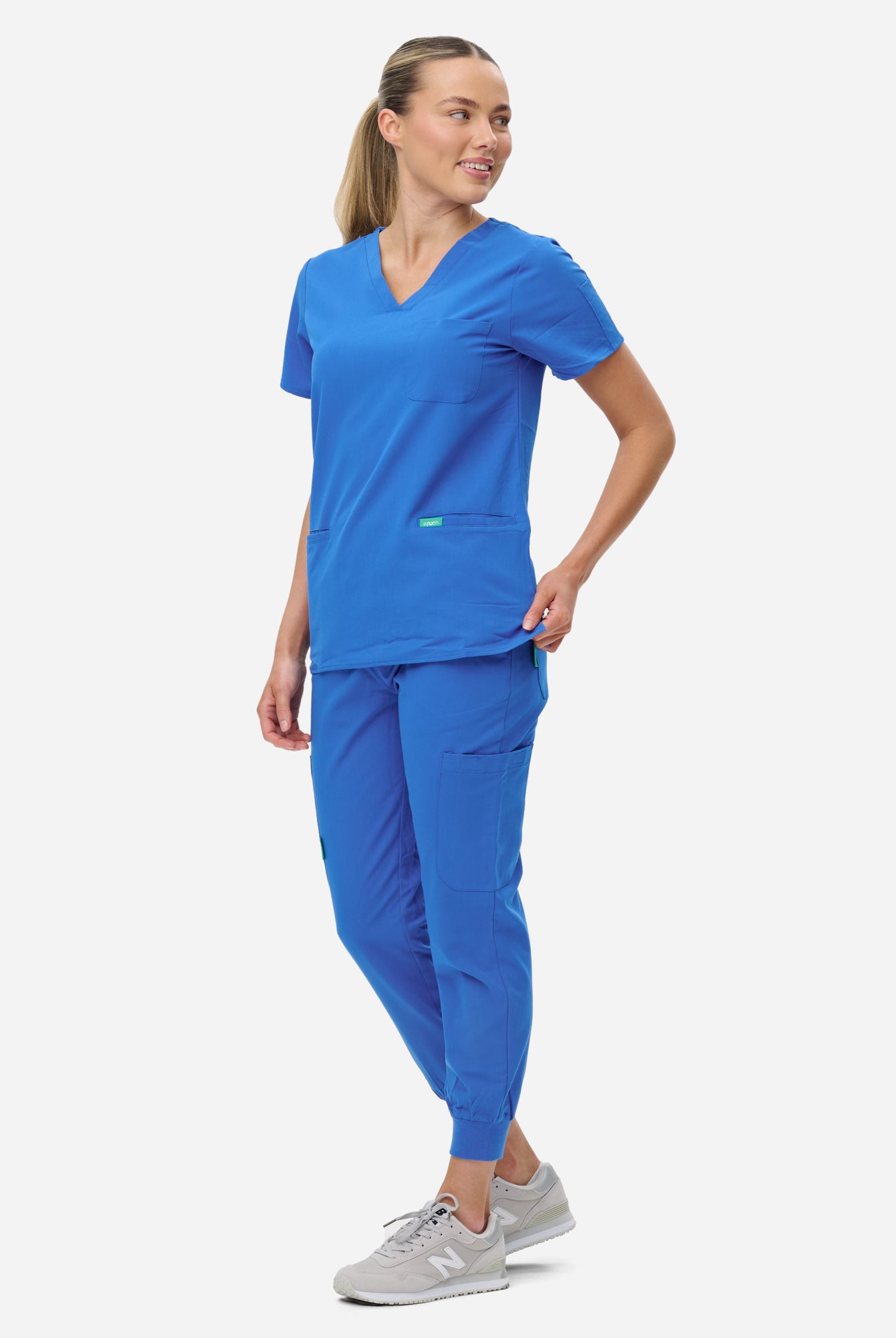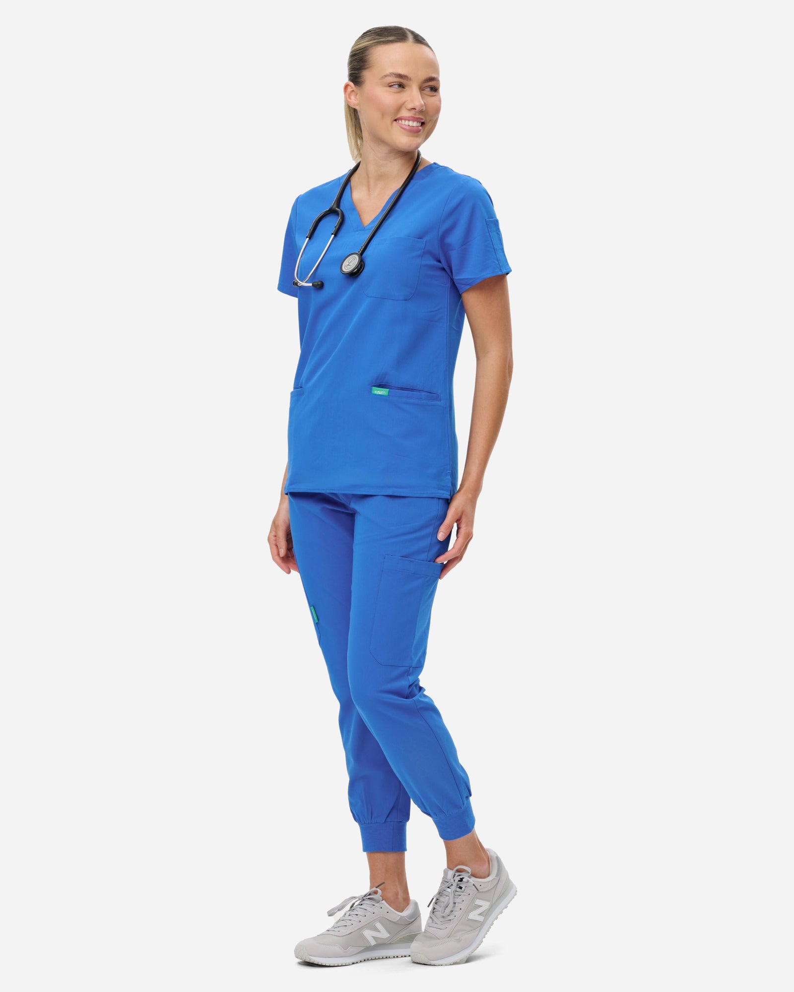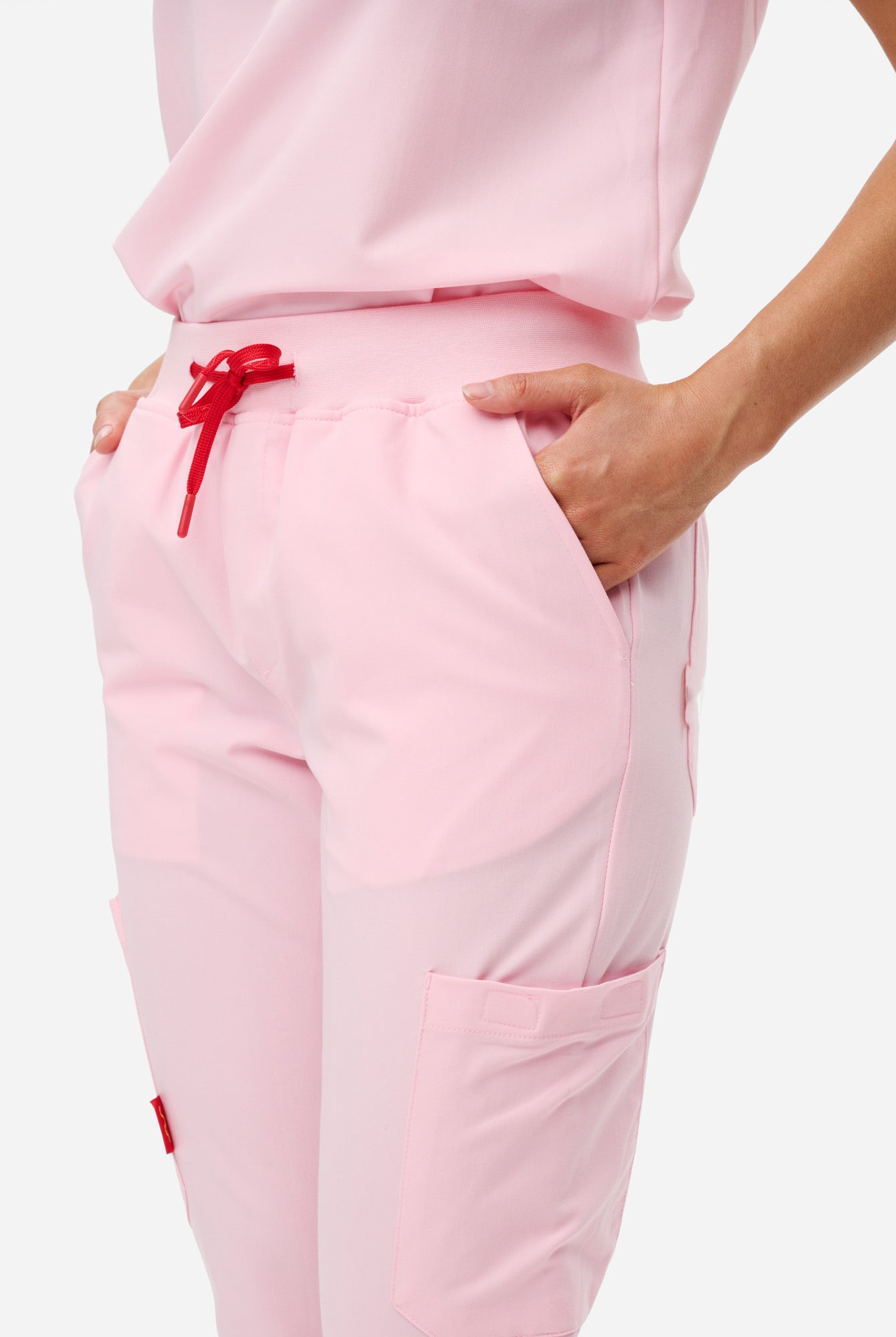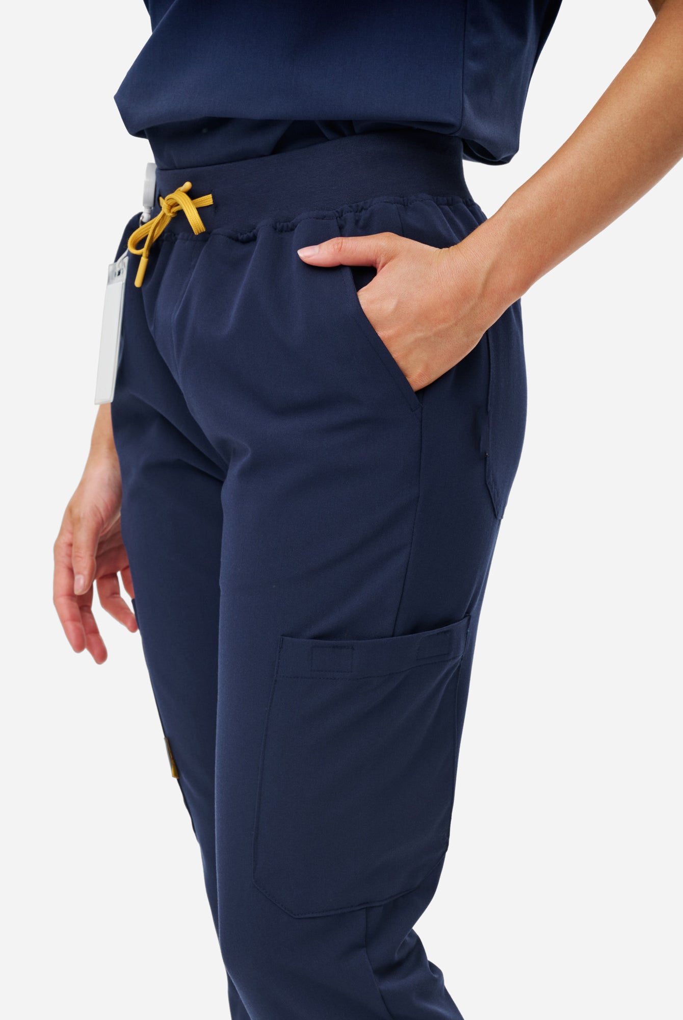 Experience unmatched comfort and durability with our Womens Scrub Jogger Pant from Epoch. Made with soft, stretchy fabric and featuring a convenient ring pocket inside the waistband and side pockets with velcro, these pants are designed for all-day wear. With a pop of color on the drawcord and cuffed legs, they are both stylish and long lasting. Upgrade your scrub game now.