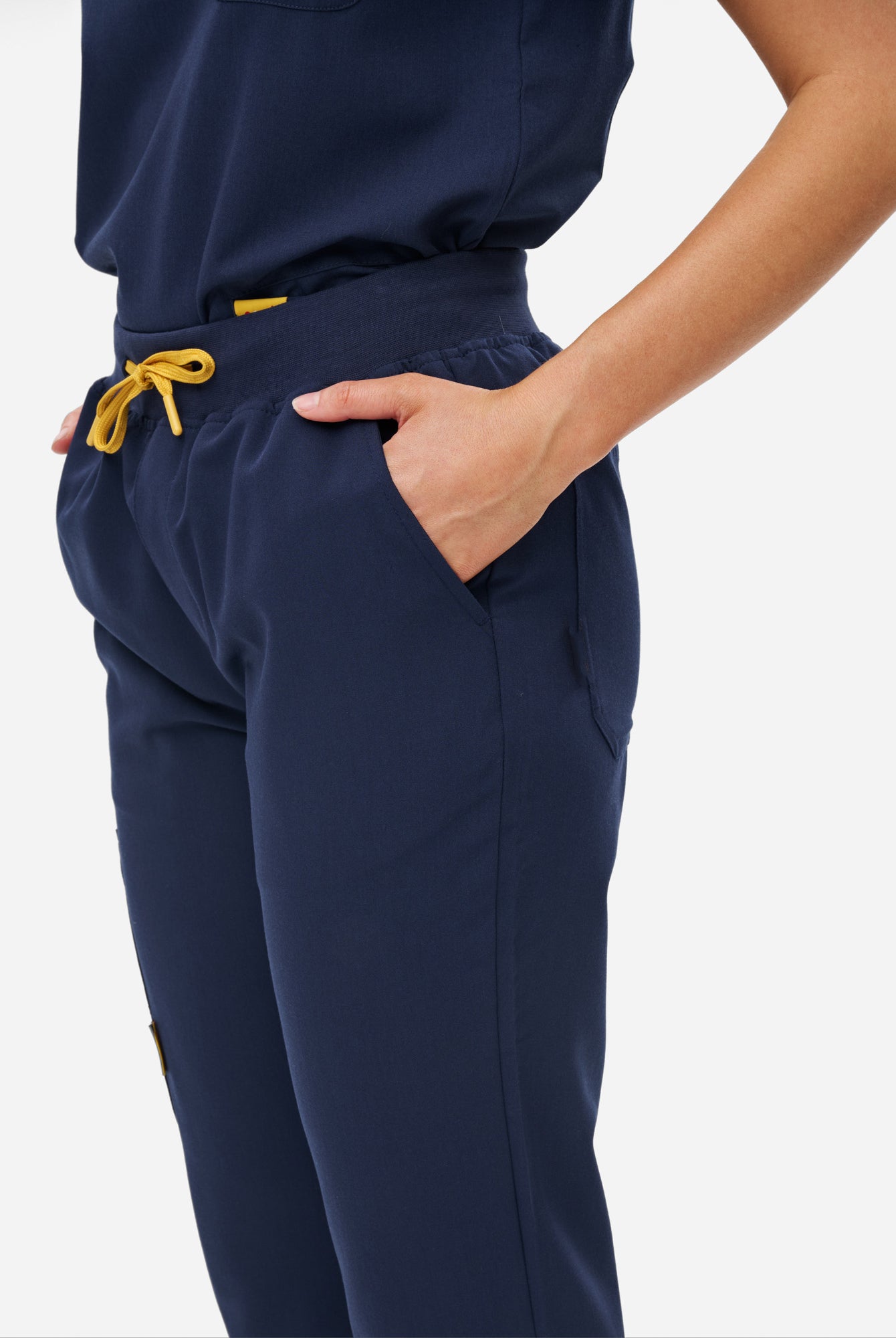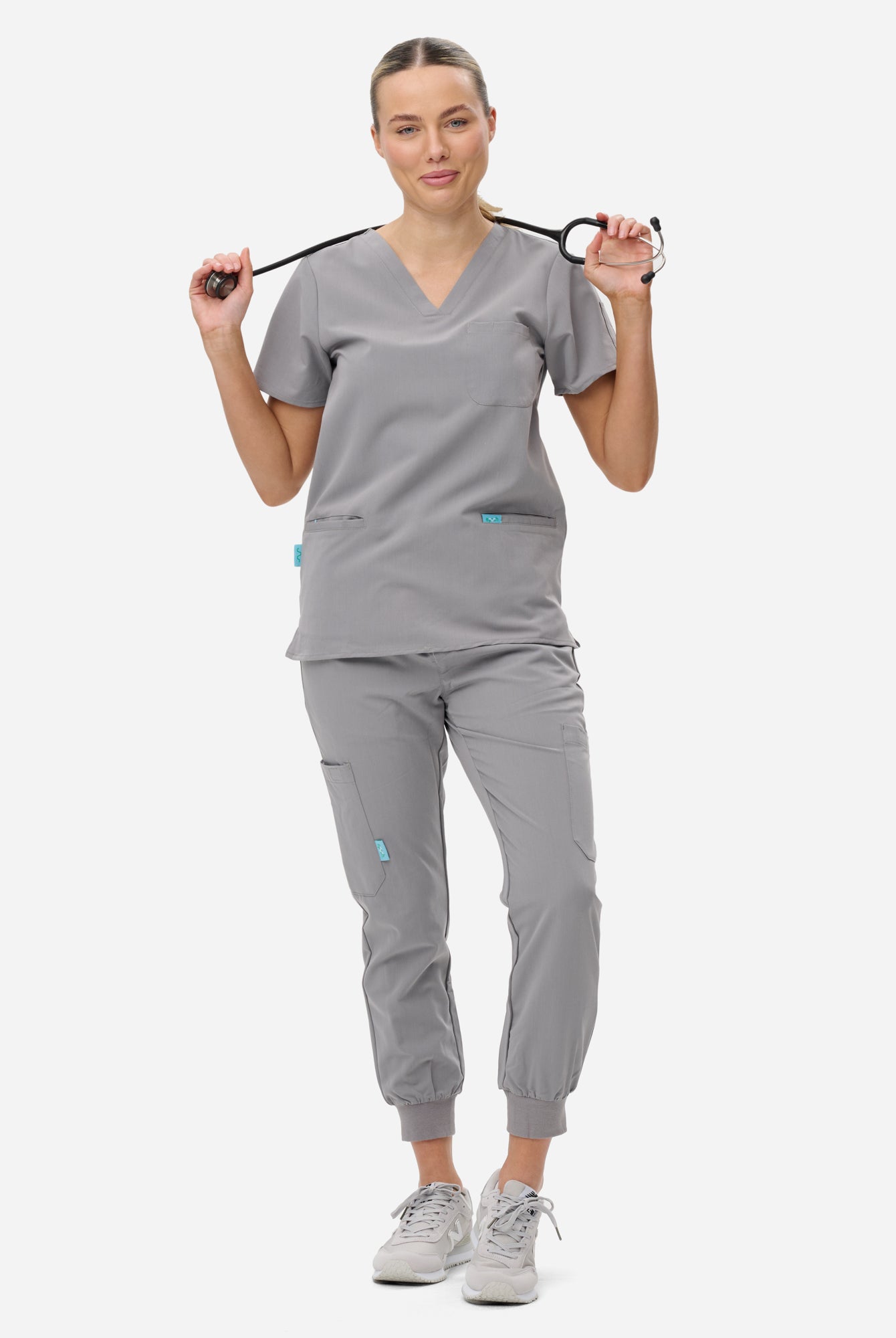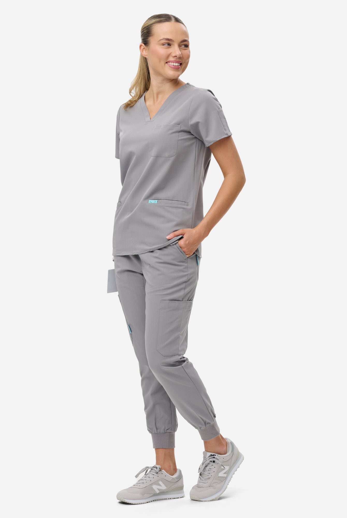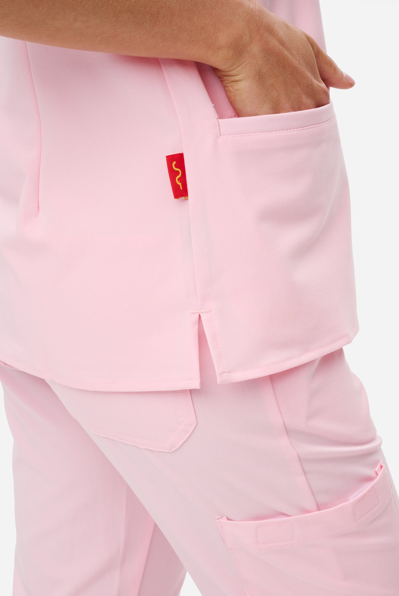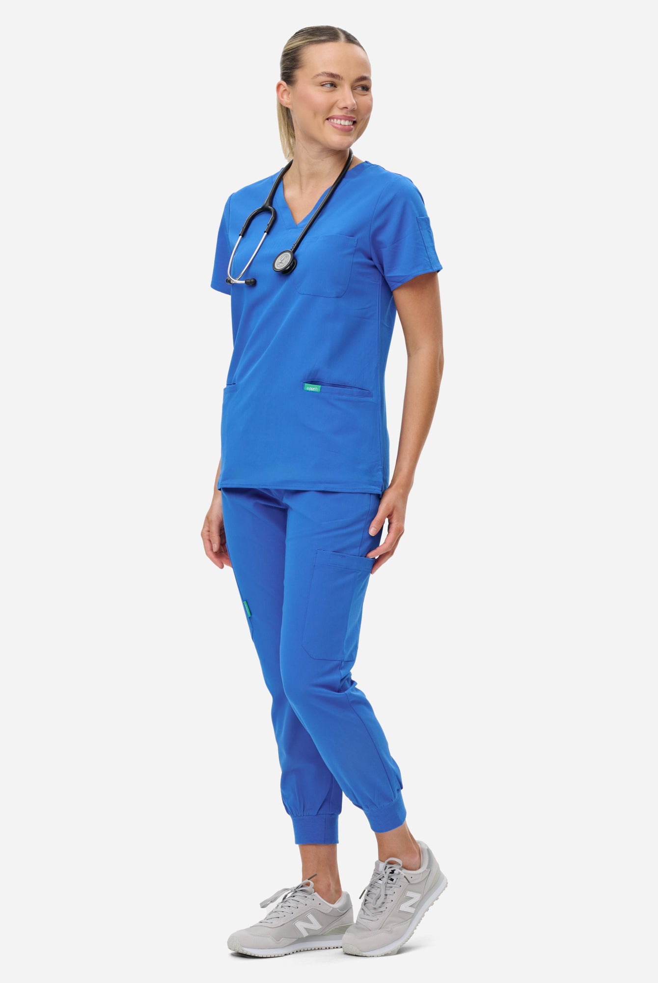 Experience unmatched comfort and durability with our Womens Scrub Jogger Pant from Epoch. Made with soft, stretchy fabric and featuring a convenient ring pocket inside the waistband and side pockets with velcro, these pants are designed for all-day wear. With a pop of color on the drawcord and cuffed legs, they are both stylish and long lasting. Upgrade your scrub game now.